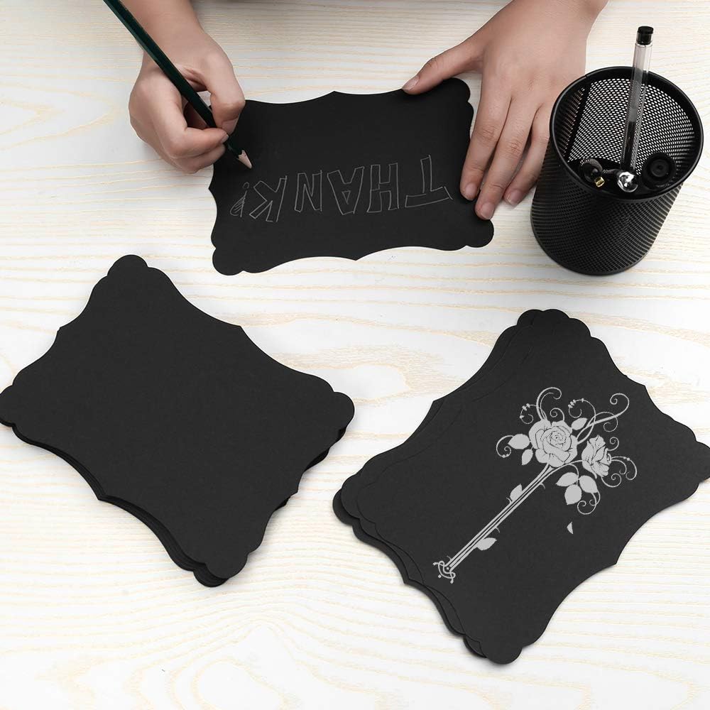 50 Pack Blank Kraft Cards Cardstock Thick Paper Brown Greeting Cards for DIY Gift Card Menus, Baby Shower and Wedding Invitations (Black, 5x7IN)