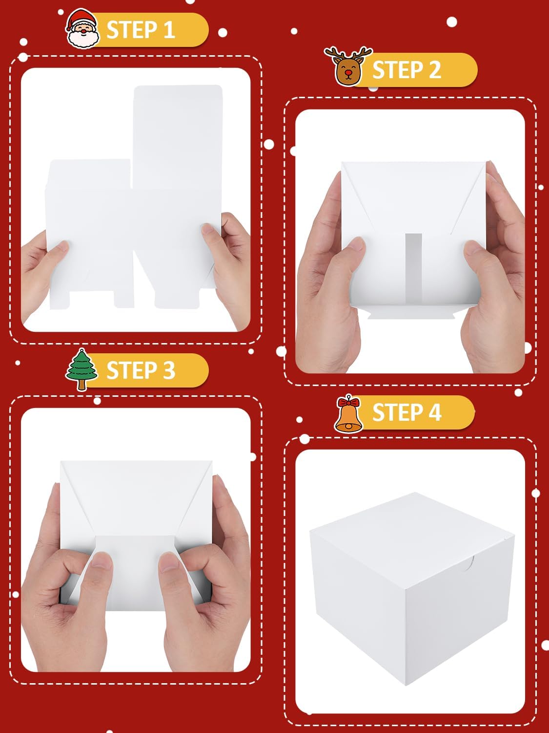 - Easy Assembly and Storage: Our cardboard gift boxes are easy to fold, let the insert of gift box bottom in right position and lock into place, and the gift box is ready. Packed flat to you makes storage more convenient, saving space when it is not needed