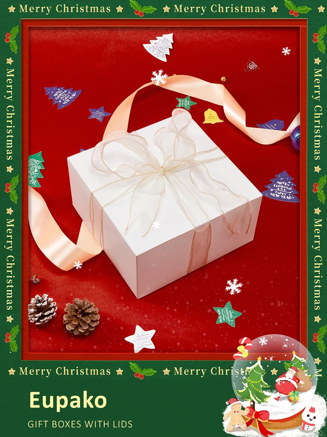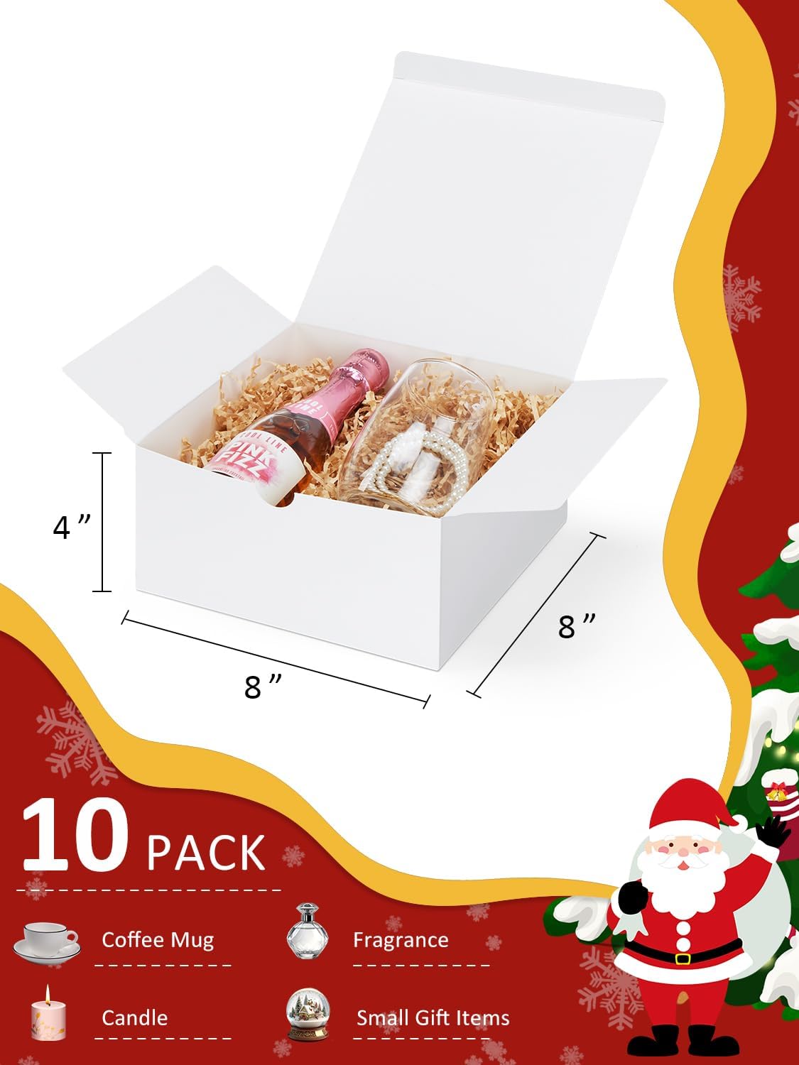 - Gift Boxes 10 Pack 8x8x4: Eupako white gift boxes are made of high quality kraft paper, sturdier and more durable than others in bearing capacity with a elaborate bottom structure. Gift Box Size: 8x8x4 Inches