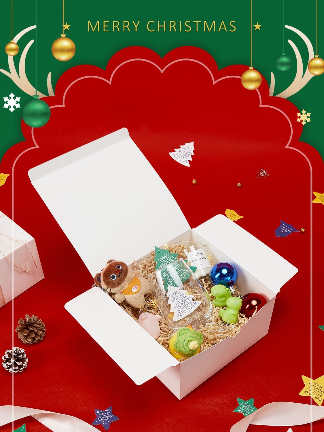 - Create Special Gifts: Create your imagination on these kraft gift boxes! Embellish the white boxes with pull bow, ribbon or gift twine, filling full of love for your gift boxes. You could also personalize paper boxes with stickers, ink stamps or stencil