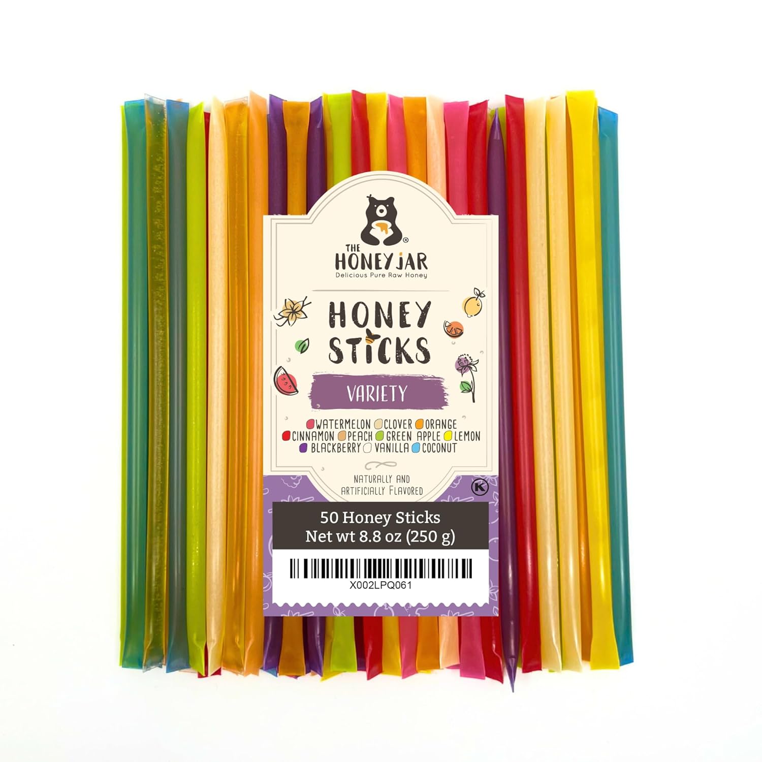 The Honey Jar Variety Pack Honey Sticks - Pure Honey Straws For Tea, Coffee, or a Healthy Treat - One Teaspoon of Flavored Honey Per Stick - Made In The USA with Real Honey - (50 Count)