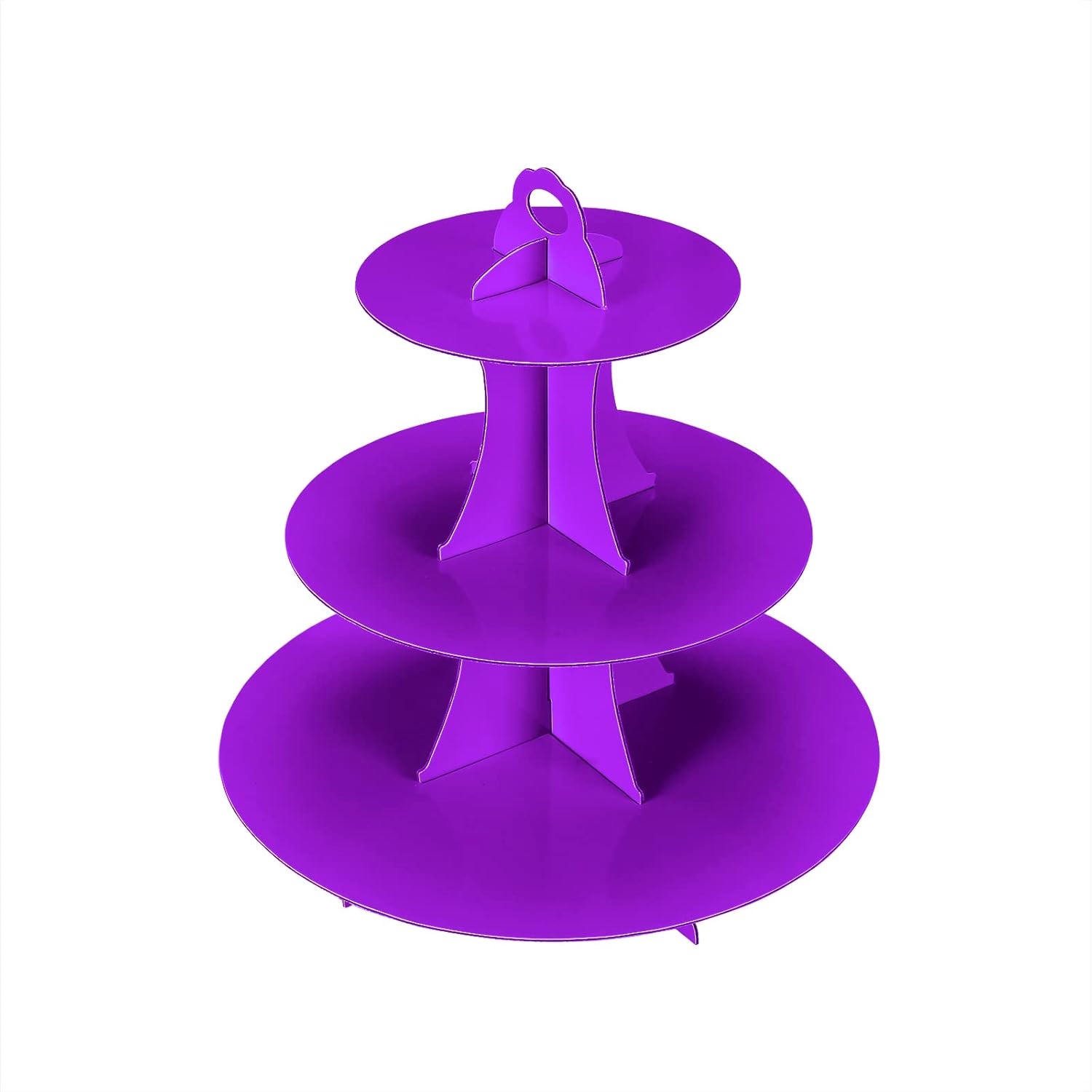 3-Tier Cupcake Stand, Cake Stand holder, Tiered DIY Cupcake Stand Tower for Dessert Table Displays, Birthday Theme Party Favors Decoration, Floral Tea Party, 12" W x 12.8" H, Purple