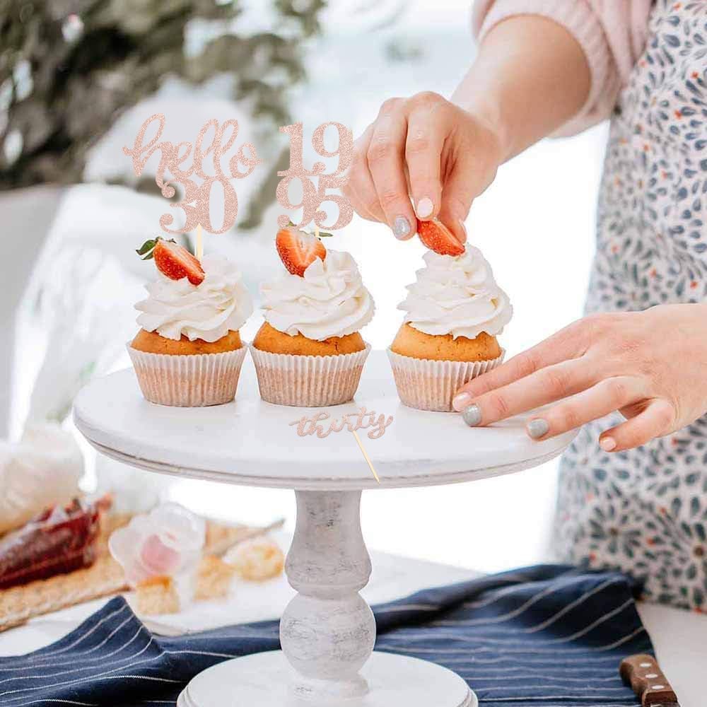 - Package Includes: 8 Pieces “1995” Number Glitter Cupcake Toppers, Size : 1.4 inch*2 inch; 8 Pieces “Thirty”Glitter Cupcake Toppers, Size : 2.6 inch*1.6 inch; 8 Pieces “hello 30”Glitter Cupcake Toppers, Size : 2.6 inch*2.2 inch