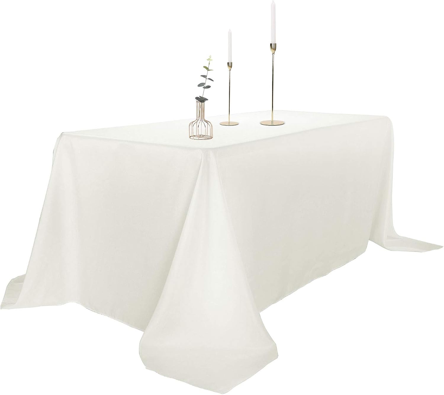 Ascoza 2pack 90x156 Inch Ivory Rectangular Tablecloth 8 Feet Table Cloth in Polyester Fabric for Wedding/Banquet/Restaurant/Parties