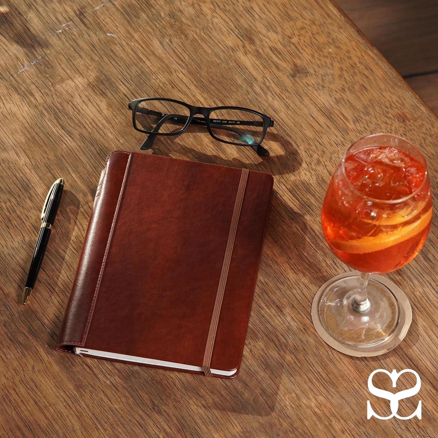 - An exquisite gift for any occasion: encased in an elegant gift box, this all-leather brown leatherbound writing journal makes a luxurious gift for Valentine's, birthdays, anniversaries, or any special event. Its unique design is appreciated by writers, professionals, and creatives alike.