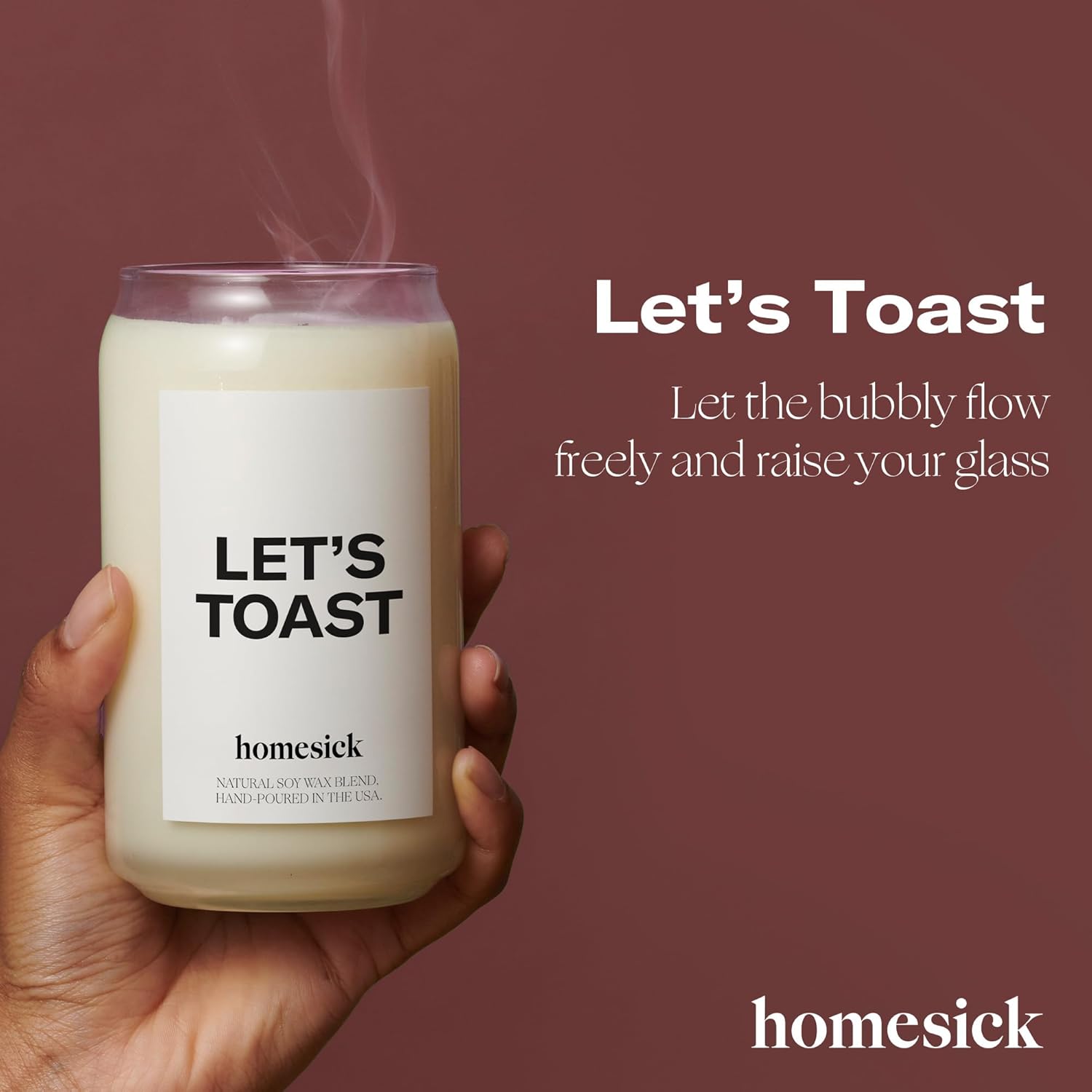 - Celebrate in Style: Let the bubbly flow freely and raise your glass for a toast to the perfect scent for any celebration. The Let's Toast candle from Homesick brings the essence of joyous moments to your home. 13.75 oz.