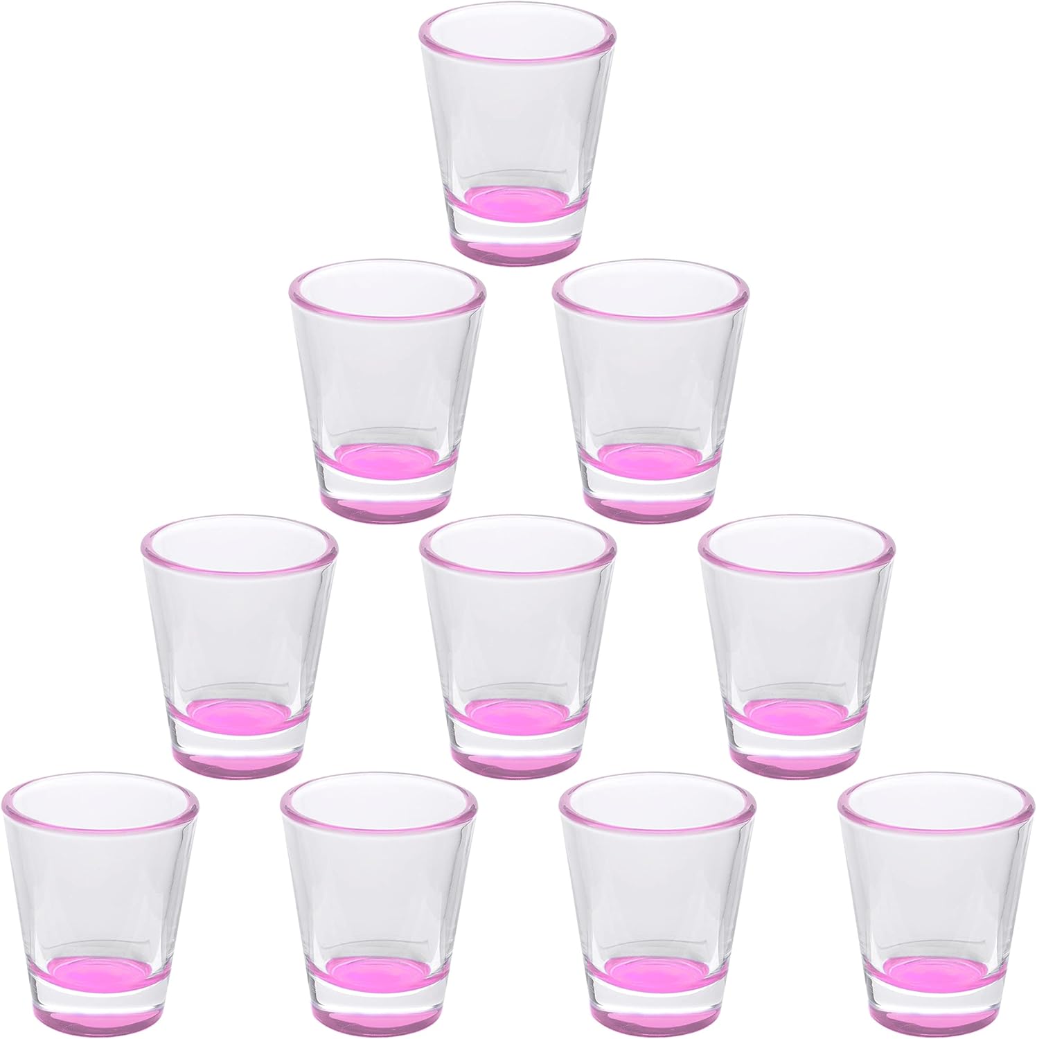 DISCOUNT PROMOS Shot Glasses Set 1.75 oz. Set of 10 Bulk Pack, Wedding Favor, Birthday Party, Tequila Shot Glasses, Vodka Shot Glass - Pink Bottom Color
