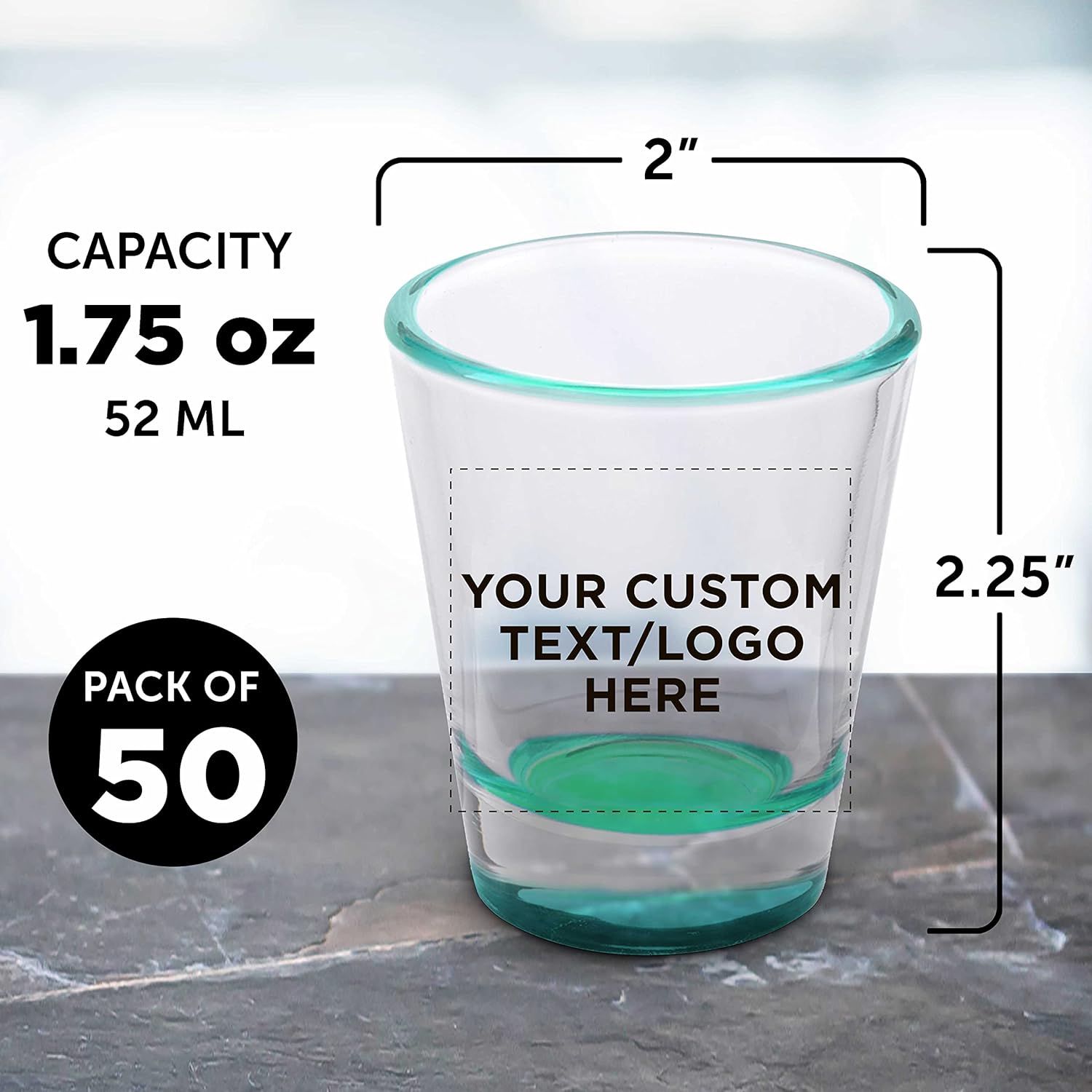 Custom Shot Glasses 1.75 oz. Set of 50, Personalized Bulk Pack - Great for Wedding Favors, Bachelorette Party Decorations, Party Fovors, Color Bottom - Green