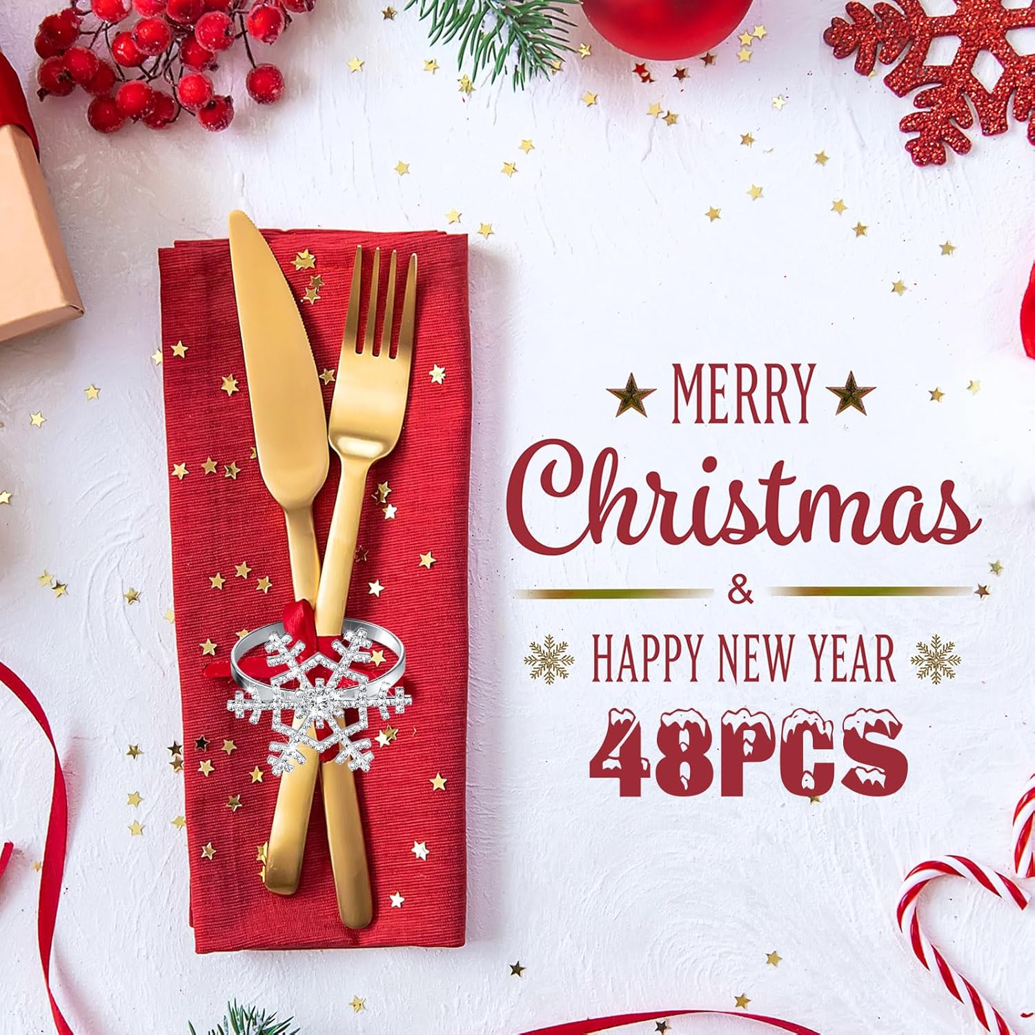 - Package includes: you will receive 12 pieces of snowflake rhinestone napkin rings, each snowflake diameter is 1.69 inches / 4.3 cm, and the napkin buckle diameter is 1.69 inches / 4.3 cm; The package contains enough quantity for you to decorate your Christmas table with ease