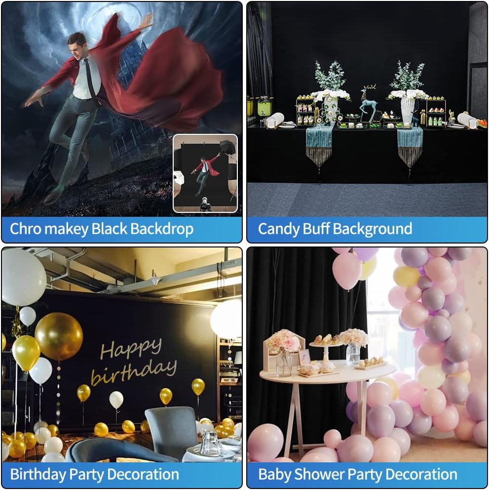 - Wide Use: The black backdrop cloth is also perfect for weddings, receptions, parties, bridal and baby showers, birthdays, candy buffets, arch stages photography, photo booths, ceremony and more