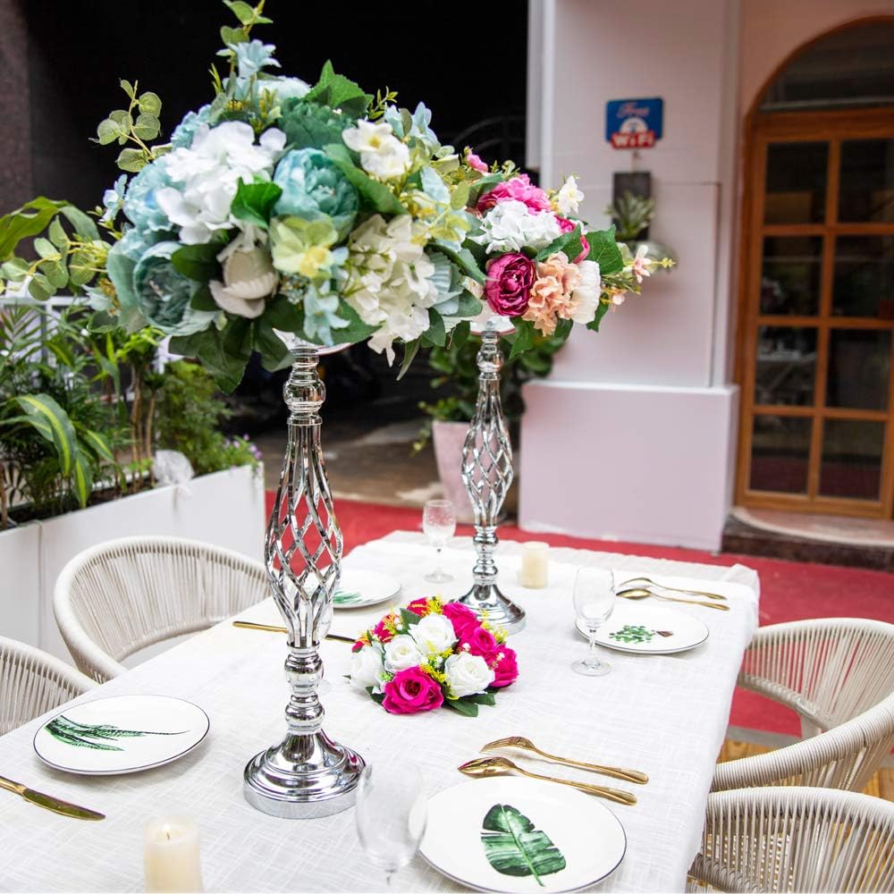 - PACKAGE INCLUDES: 2 pcs of silver wedding centerpieces. These centerpieces are 52cm/20.47" high. Their base is 14cm/5.51" wide, and the top opening diameter is 15cm/5.91".