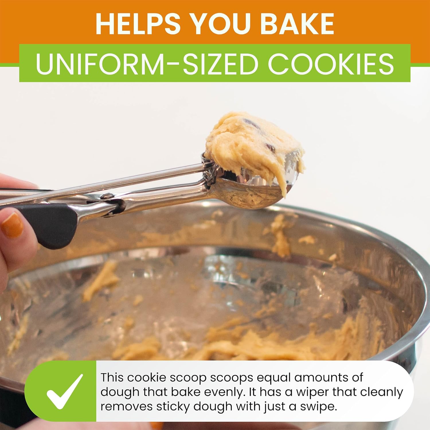 - Versatile Batter Scoop - This kitchen tool does more than scoop cookie dough. You can use it as cupcake scoop, protein balls scoop, meatballs scoop, melon baller scoop, ice cream scoop, sorbet scoop, muffin scoop and so much more!