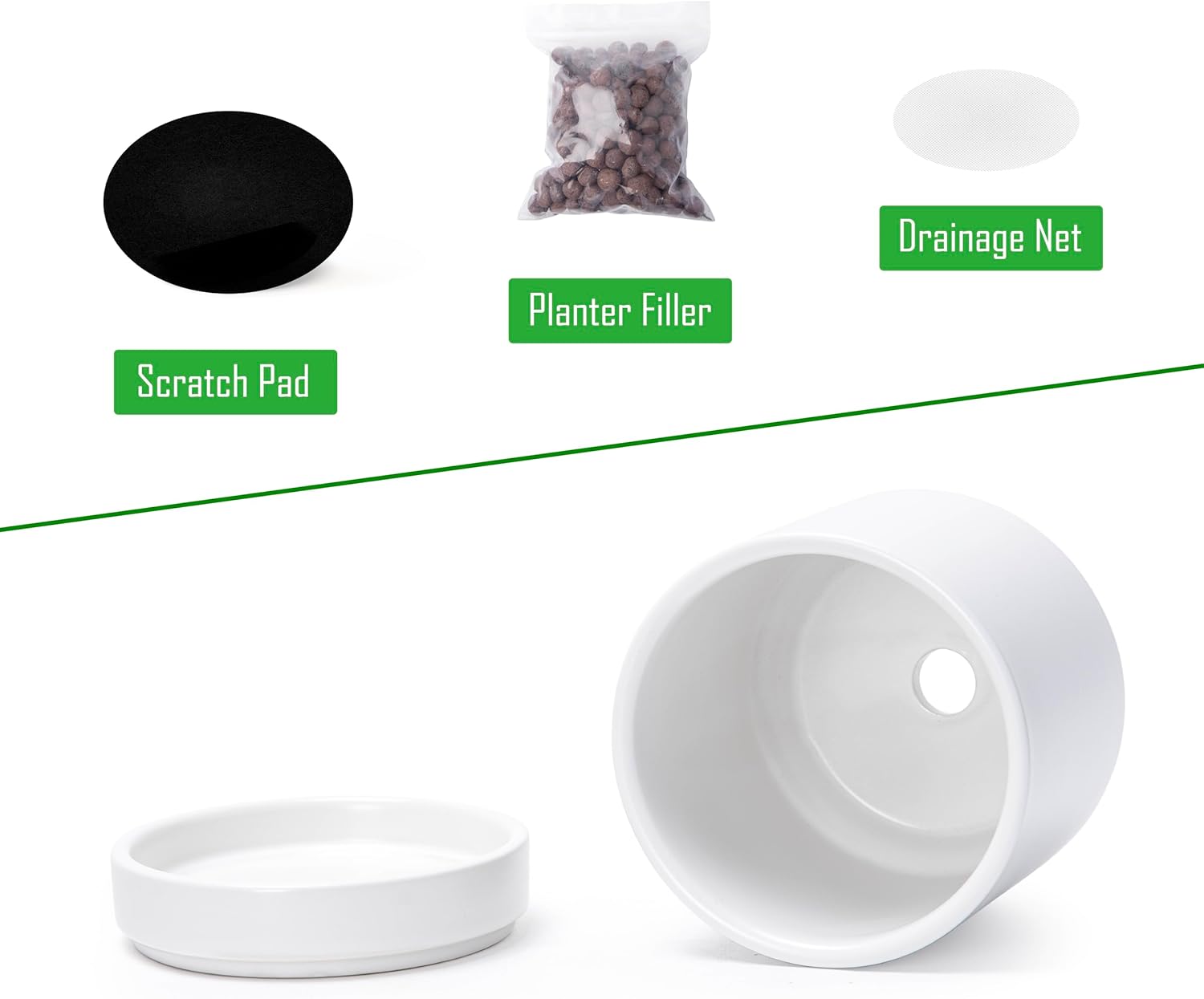 D'vine Dev Set of 4 Small Ceramic Plant Pots, 4.7 Inch Succulent Planter Pot for Plants with Drainage Hole and Saucer, White, 94-X-B-1