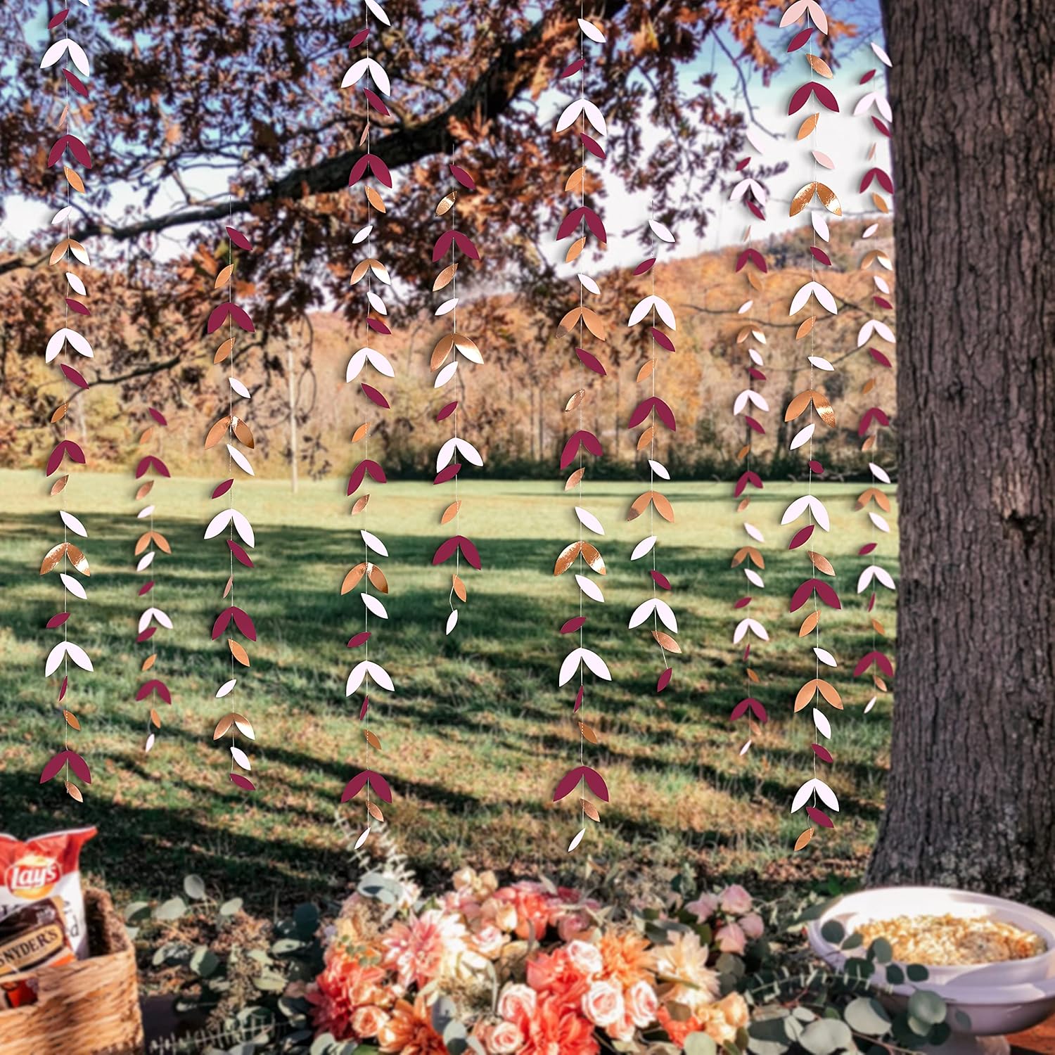 52 Ft Burgundy Rose Gold Party Decorations Leaf Garland Kit Paper Hanging Leaves Streamer Banner for Birthday Bachelorette Engagement Anniversary Wedding Bridal Shower Fall Autumn Party Decor Supplies