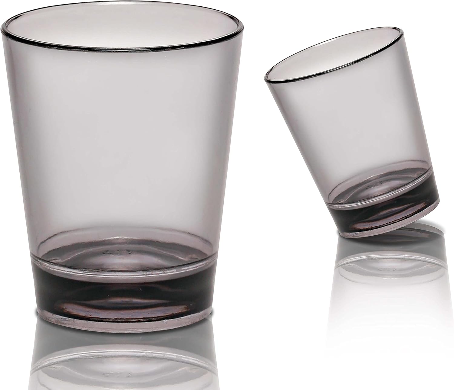 - DURABLE but INEXPENSIVE - These cheap shot glasses have thick bases along with a sheer rim to portray only the classiest look for your barware! 1.5 oz. Translucent Plastic shot glasses are strong so they won't crack, chip, or break easily. these cheap shot glasses have thick bases along with a sheer rim to portray only the classiest look for your barware!