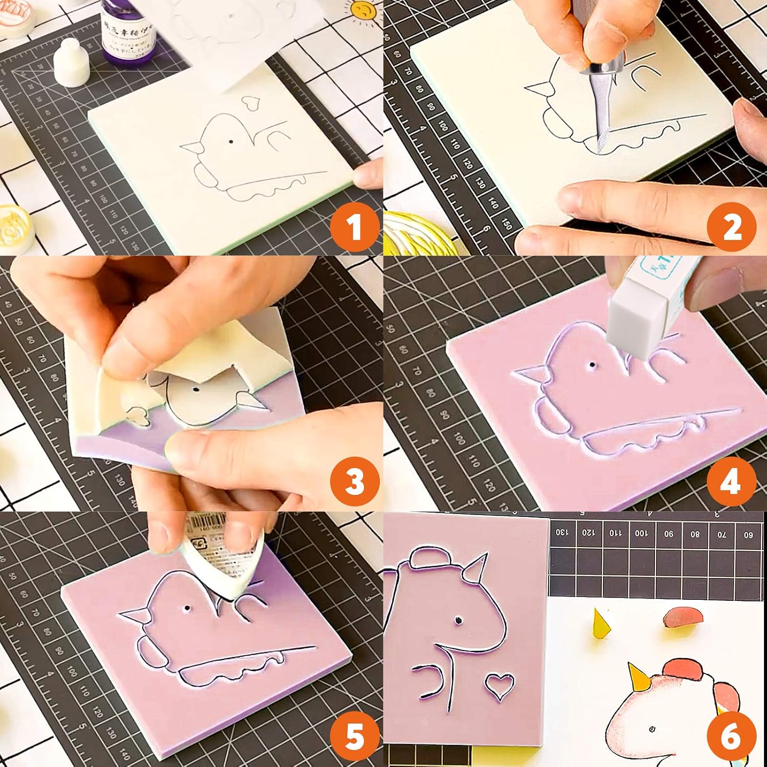 - 【Great Arts and Crafts Use 】This DIY rubber stamp making kit is suitable for block printing artist or hobbyists. Widely applied in card crafting, paper crafts, inking blocks, printmaking, carved surfaces, scrapbooks, stamping making, paintings. You could use them to creat the customized and meaningful crafts for your imagination.