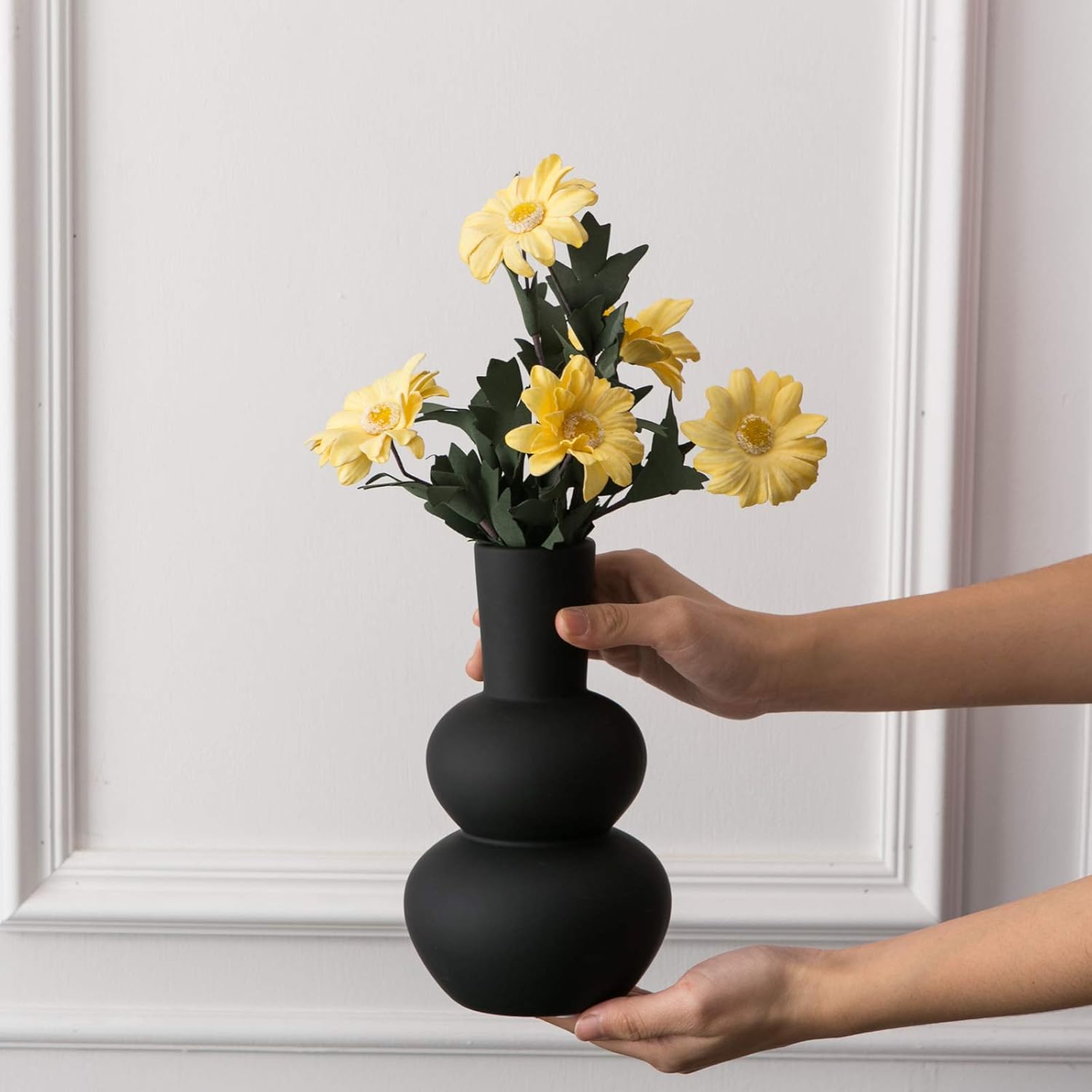 - Size- The Black Vase measures approximately 5 1/2 x 5 1/2 x 8 1/4inch; Bottle mouth diameter: 2 inch. Made of 100% high quality ceramic, the vases have a good ability of corrosion resistance.
