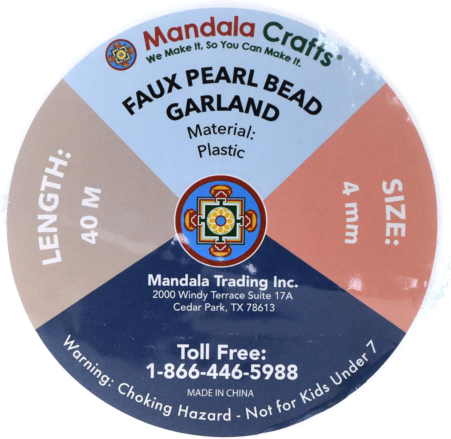 Mandala Crafts 4mm Faux White Pearl Beads Roll - 44 Yards Strand of Fake Pearls Chain Garlands Spool String for Christmas Tree, Wedding, Party, Vases, DIY Decoration