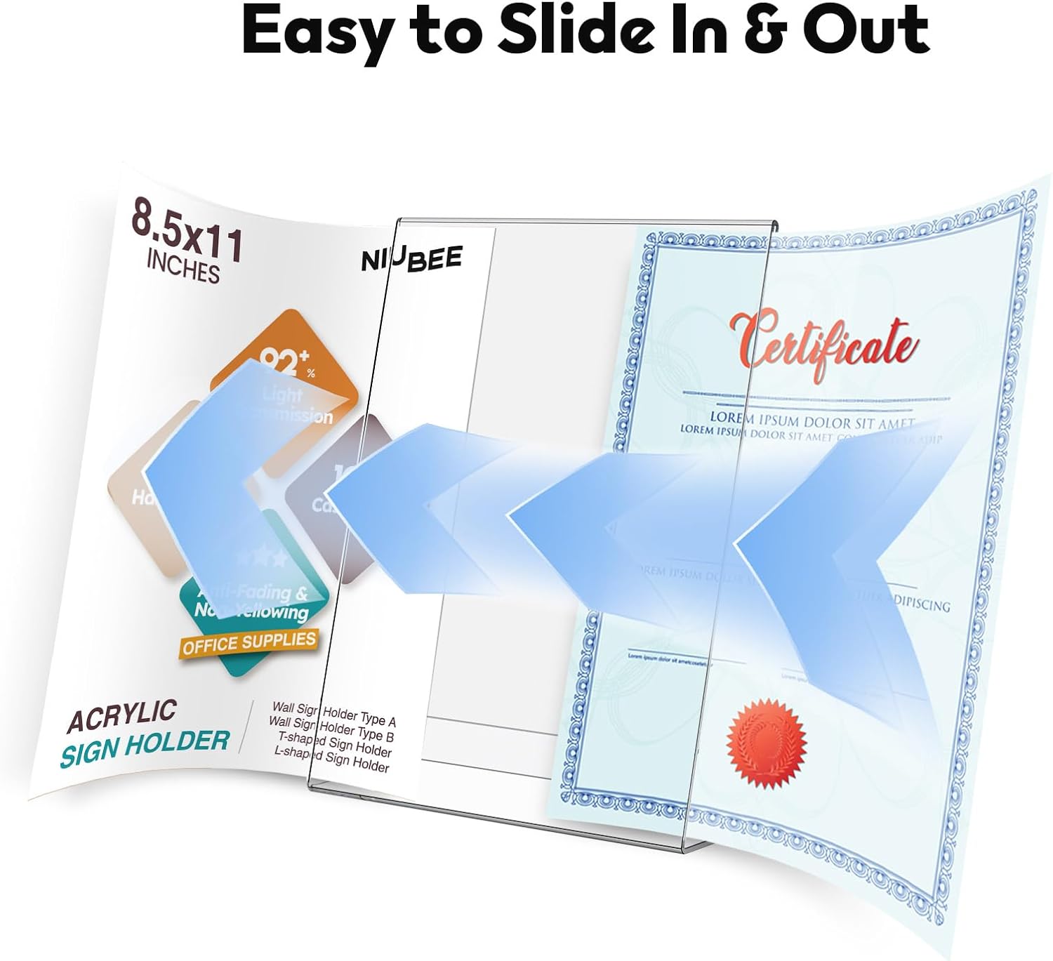 - MULTIPURPOSE USE - NIUBEE clear plastic holders are perfect for displaying signs flyers, paper, images, brochures, ads in the office, hotel, library, school, church, restaurant, bar, conference, exhibition, fair, trade show, wedding events etc.