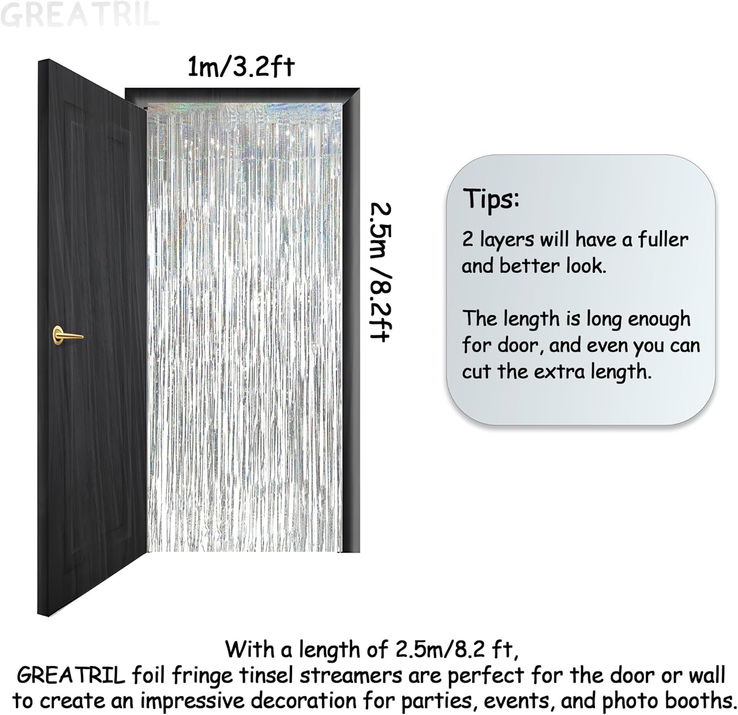 Silver Foil Fringe Tinsel Backdrop - GREATRIL Metallic Tinsel Streamers Curtains for 2026 NYE/Prom/Dancing Ball/Christmas/Bachelorette Party Decorations - Pack of 2