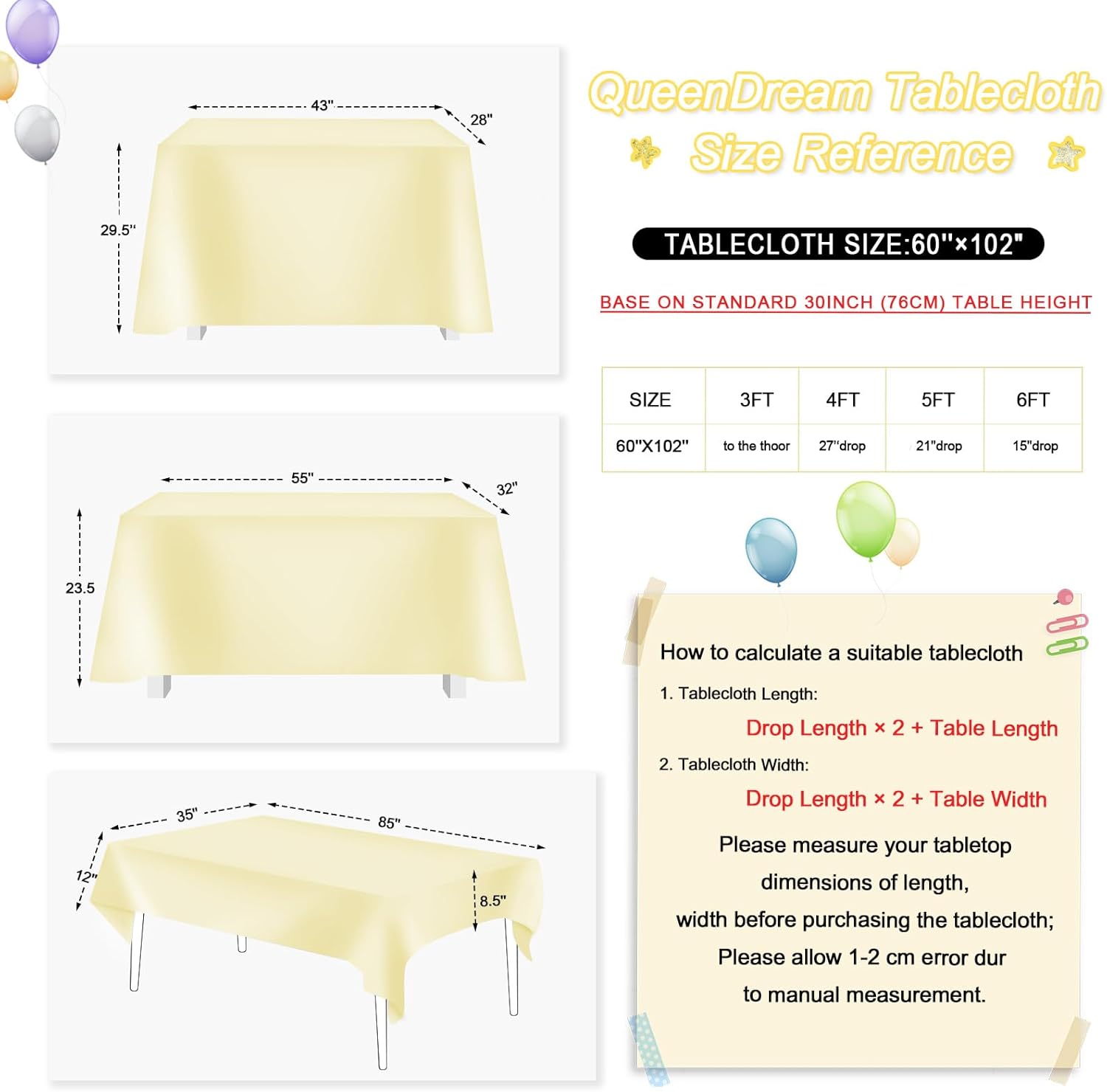 - Gold Tablecloth for Parties: Elevate any occasion instantly with the unique shimmer of the gold tablecloth. You can use different colors to match your occasion, and you can use two or more Gold tablecloth to overlap and achieve unexpected results!