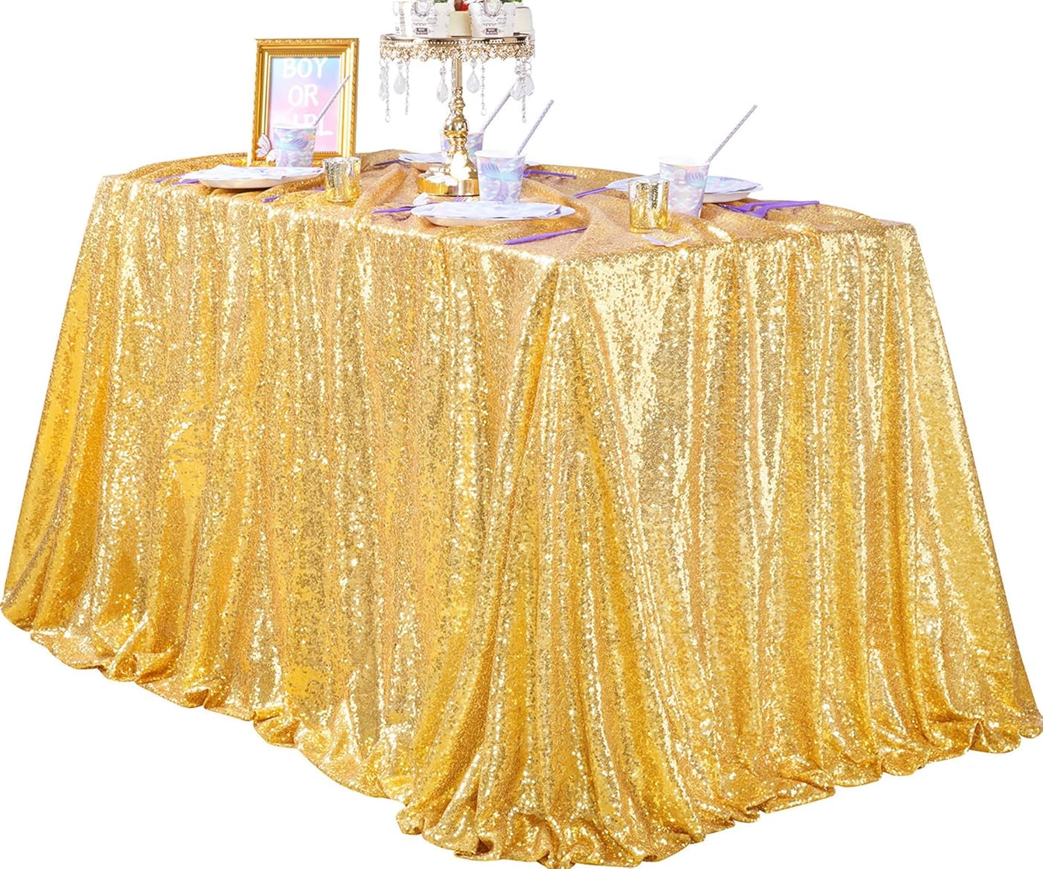 - Gold Tablecloth Widely Used: This glitter gold tablecloth is perfect for Hollywood Party, Homecoming, Christmas, Birthday, Halloween, Theme Party, New Year Eve, Bridal Shower, Baby Showers, Graduations, Wedding, Cocktail etc.