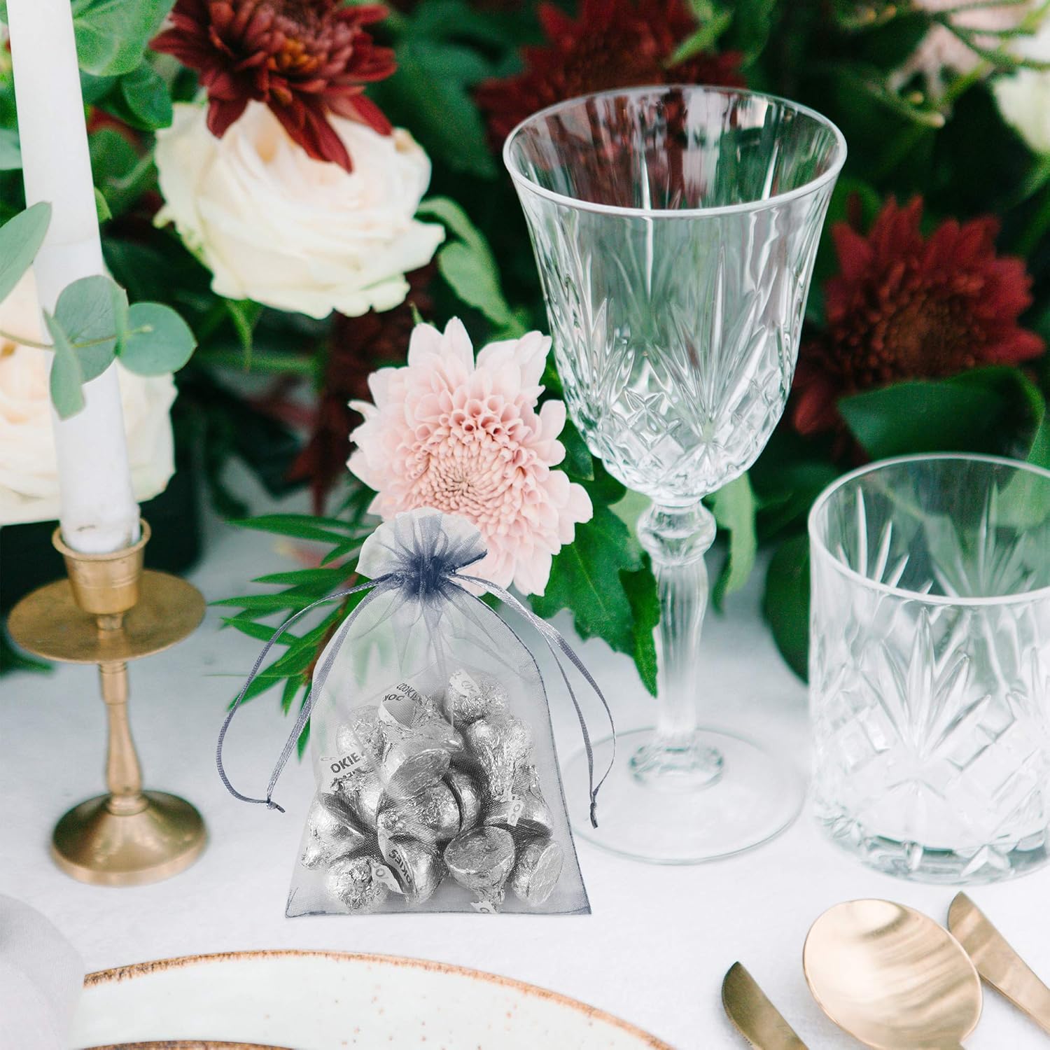 Super Z Outlet 100 Pack 5x7 Inch Mini Sheer Drawstring Organza Transparent Bags Jewelry Sack Pouches for Wedding, Party Decorations, Arts & Crafts Gifts (Silver)