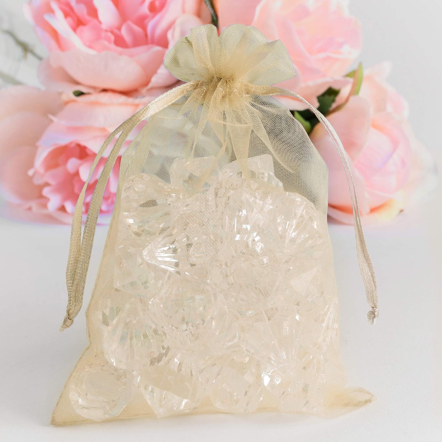 Super Z Outlet 100 Pack 5x7 Inch Mini Sheer Drawstring Organza Transparent Bags Jewelry Sack Pouches for Wedding, Party Decorations, Arts & Crafts Gifts (Ivory)