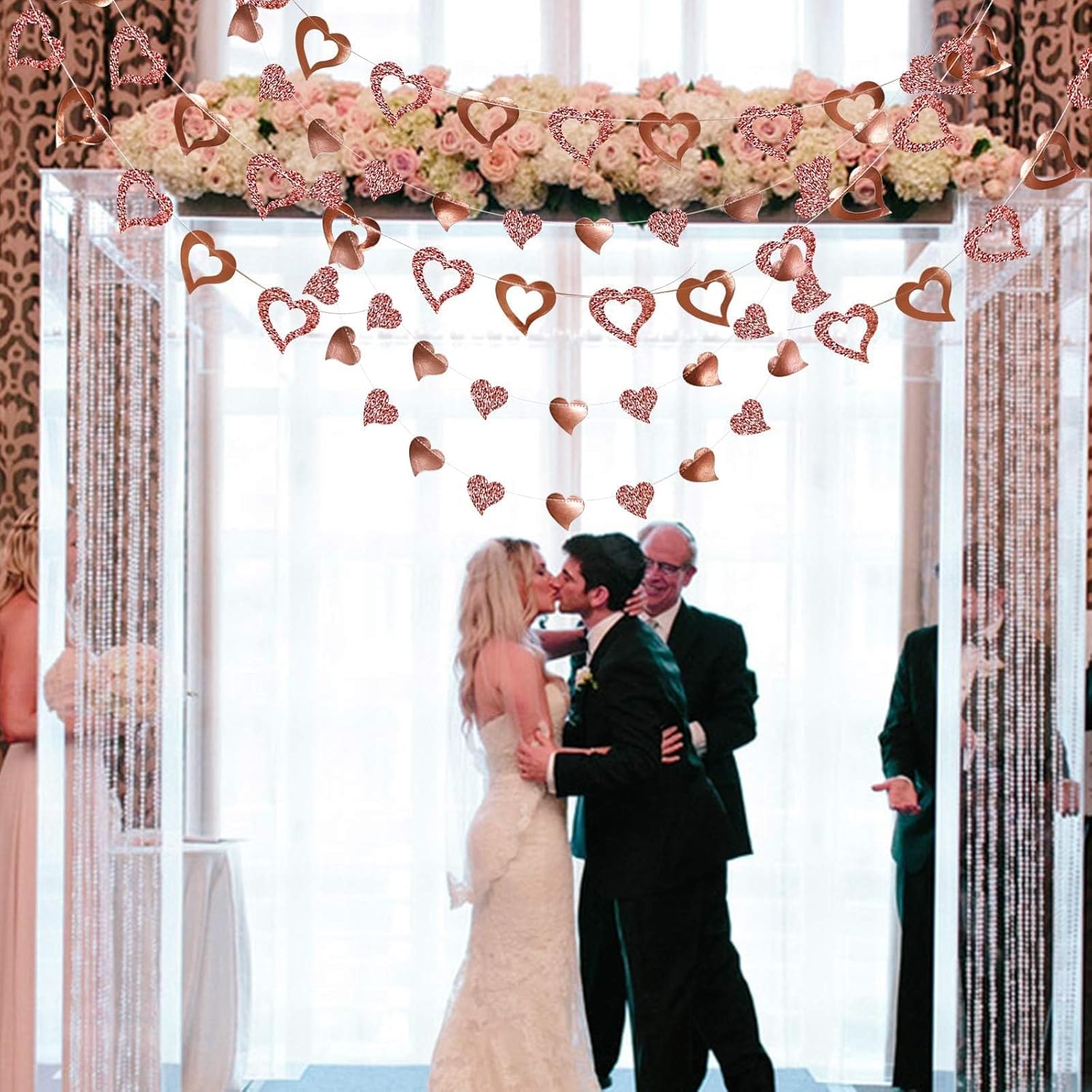 - Unique Lovely Design: Romantic heart banners symbolize love and care, creating glamorous buntings for Valentine's Day, weddings, anniversaries, and parties. Impress guests with luxurious rose gold backdrops and photo booth decorations.