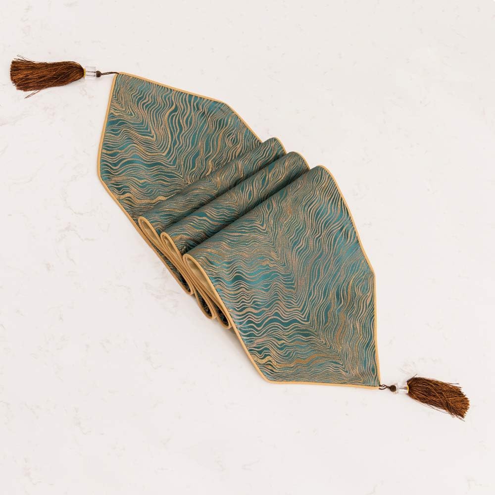 Avigers 12 x 78 Inch Decorative Luxury Abstract Striped Green Teal Table Runners with Tassels for Home Living Room Bedroom Art Decor Wedding