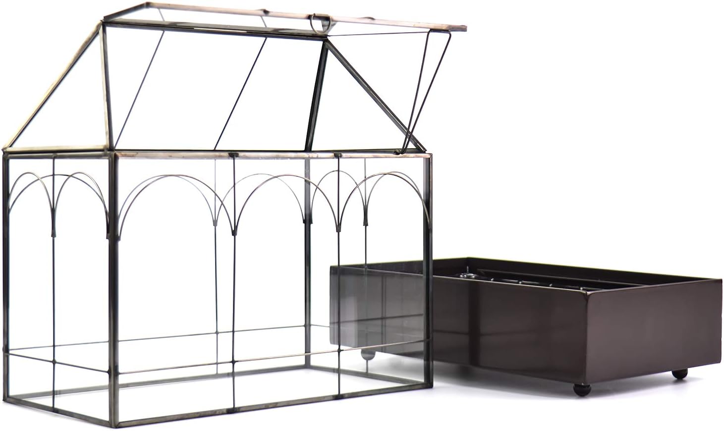 - 【Handmade】The craftsmen carefully welded the brass frame of this glass greenhouse by hand, and put the full transparent glass into the frame, thus forming a exquisite handicraft,this glass terrarium tabletop planter made of reinforced glass, super sturdy.
