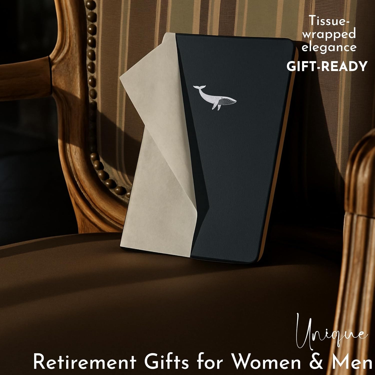 SETTINI Lined Journal, Ideal for Journaling - A5 Vegan Leather Notebook, 192 Archival-Quality Pages, QuillEase Bleed-Free Paper, Inner Pocket & Bookmark - Whale Gifts for Women & Men, Navy Whale