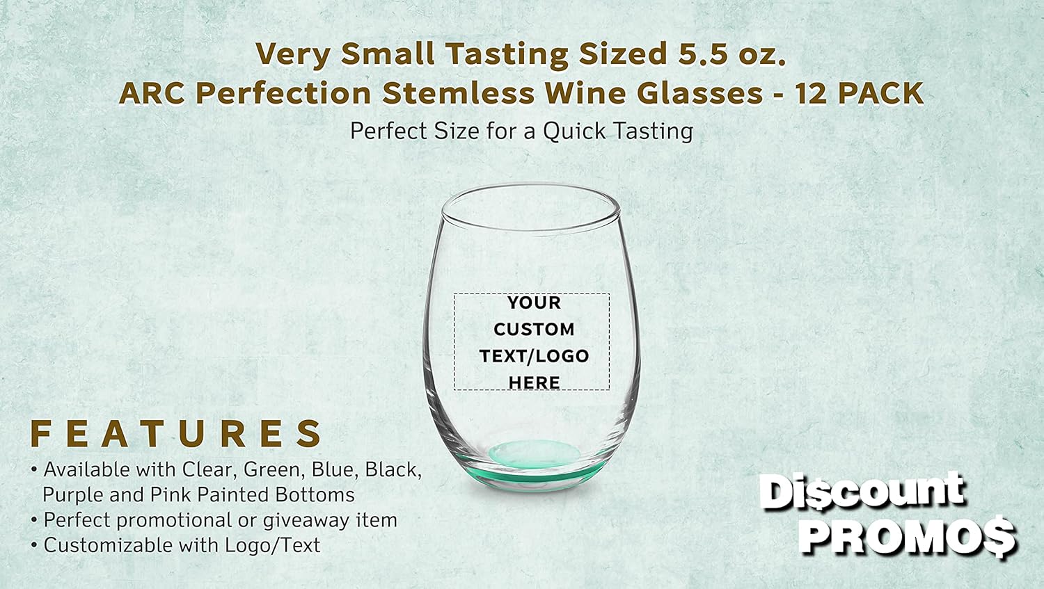 Custom Stemless Wine Glasses by ARC 5.5 oz. Set of 12, Personalized Bulk Pack - Perfect for Hotel, Bar, Restaurant or Lounge - Green