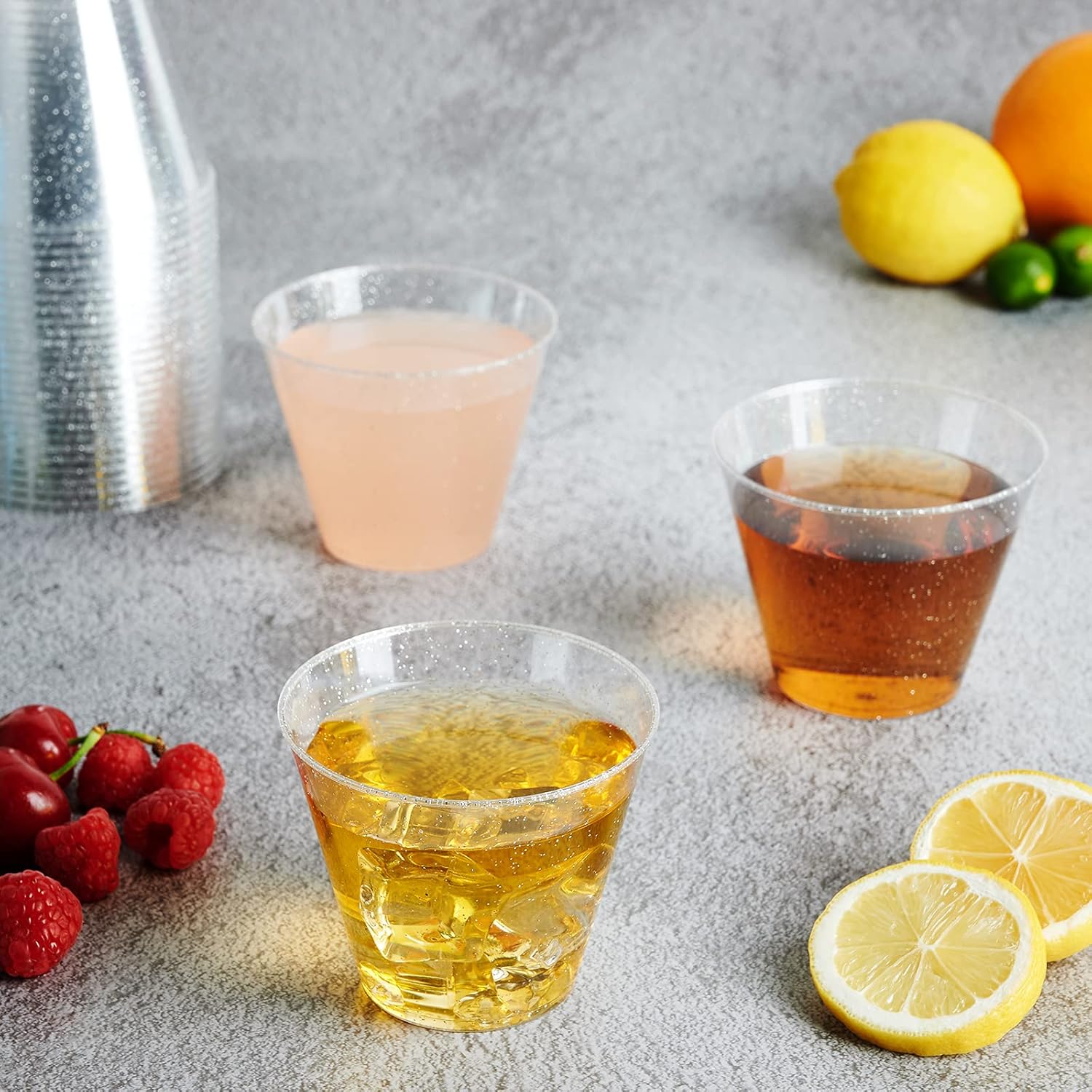 - 【Great Value】Every package includes 100 pack 9 oz silver glitter plastic cups for home, event, or commercial use, perfect for wine, champagne, juice, beer, liquor and various mixed drinks, Don't worry about the mess after the party! Just toss the cups when you're done