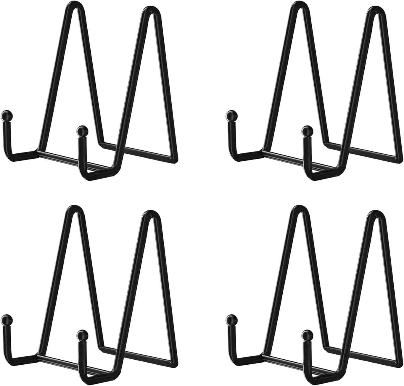 Decolore 4 Pack 4.5 Inch Black Display Stands Metal Plate Holder Display Stands for Picture, Decorative Plate, Book, Photo Easel, Artistic Work