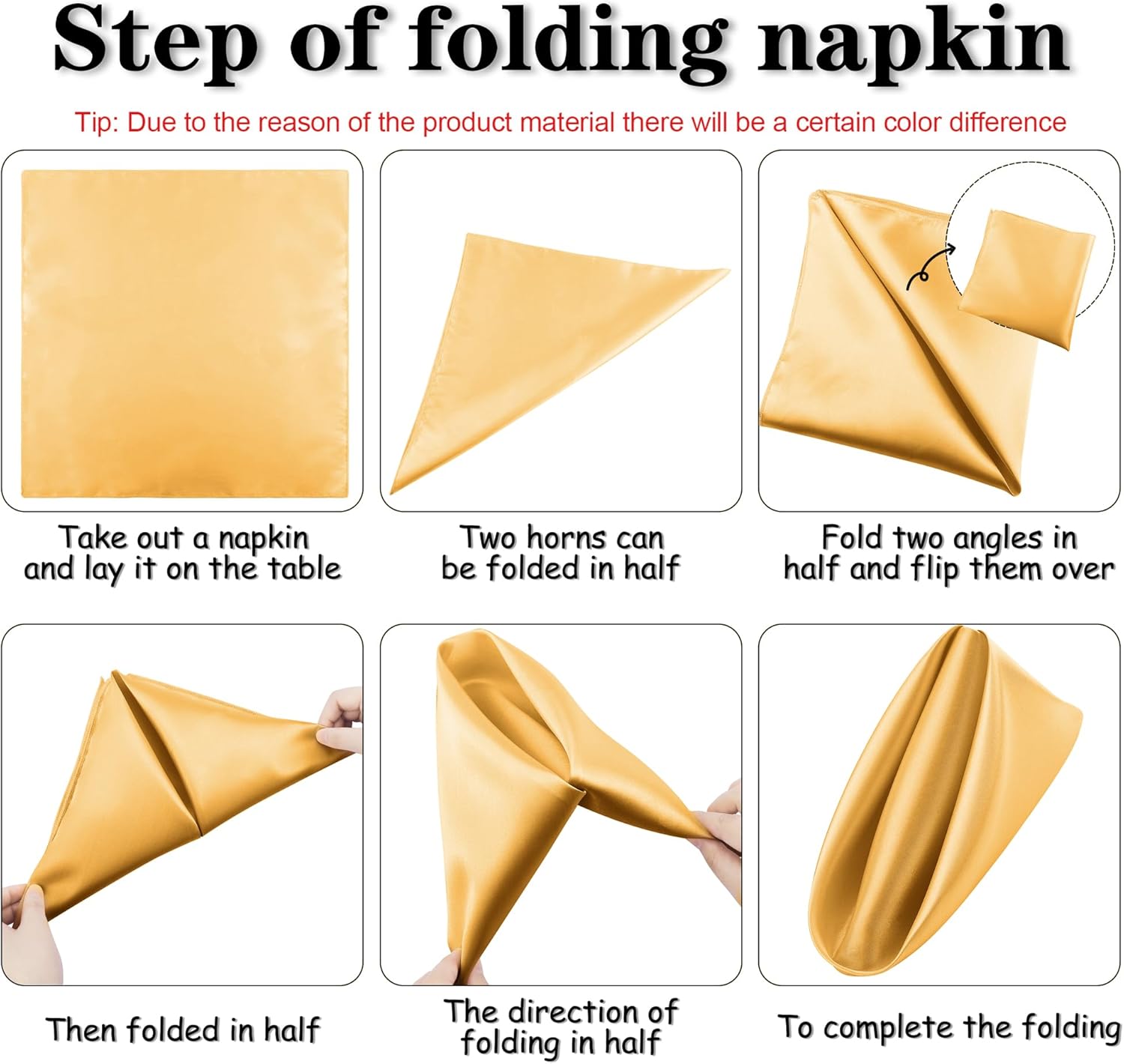 - Package content: you will receive 12 pieces of satin napkins in gold, each is 17 x 17 inches/43 x 43 cm in size, the quantity is very large, enough for daily use and replacement