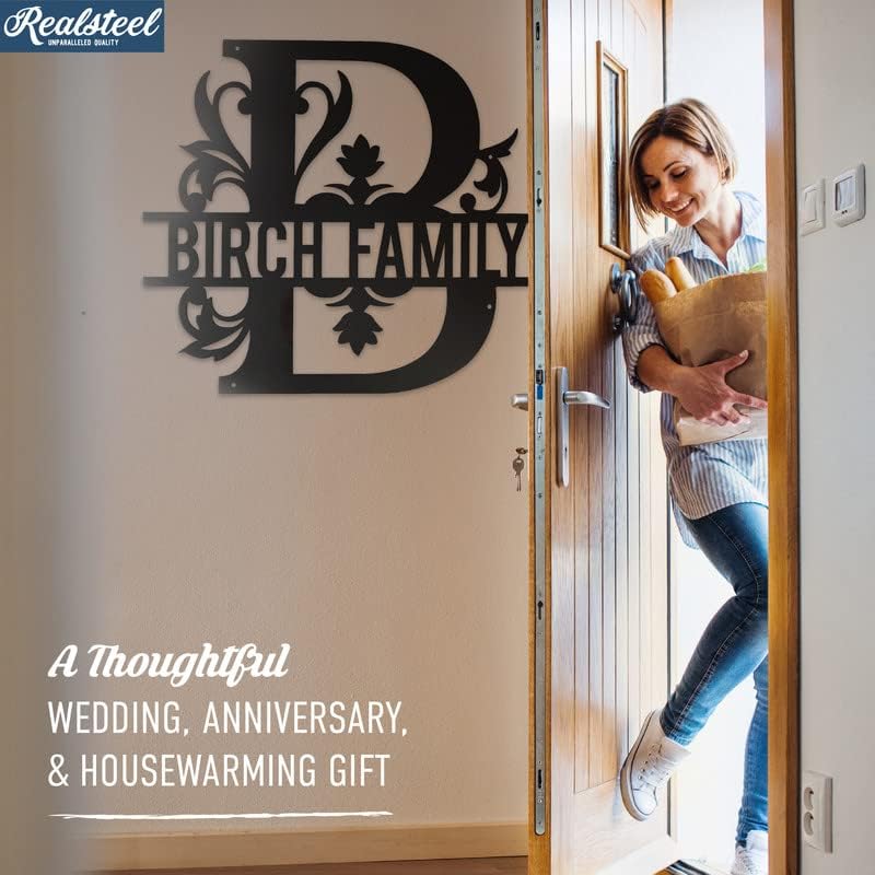 RealSteel Metal Split Letter Monogram โ Personalized Last Name Sign for Home & Outdoor Dรฉcor โ Custom Metal Wall Art โ Family Name Sign, Welcome Sign