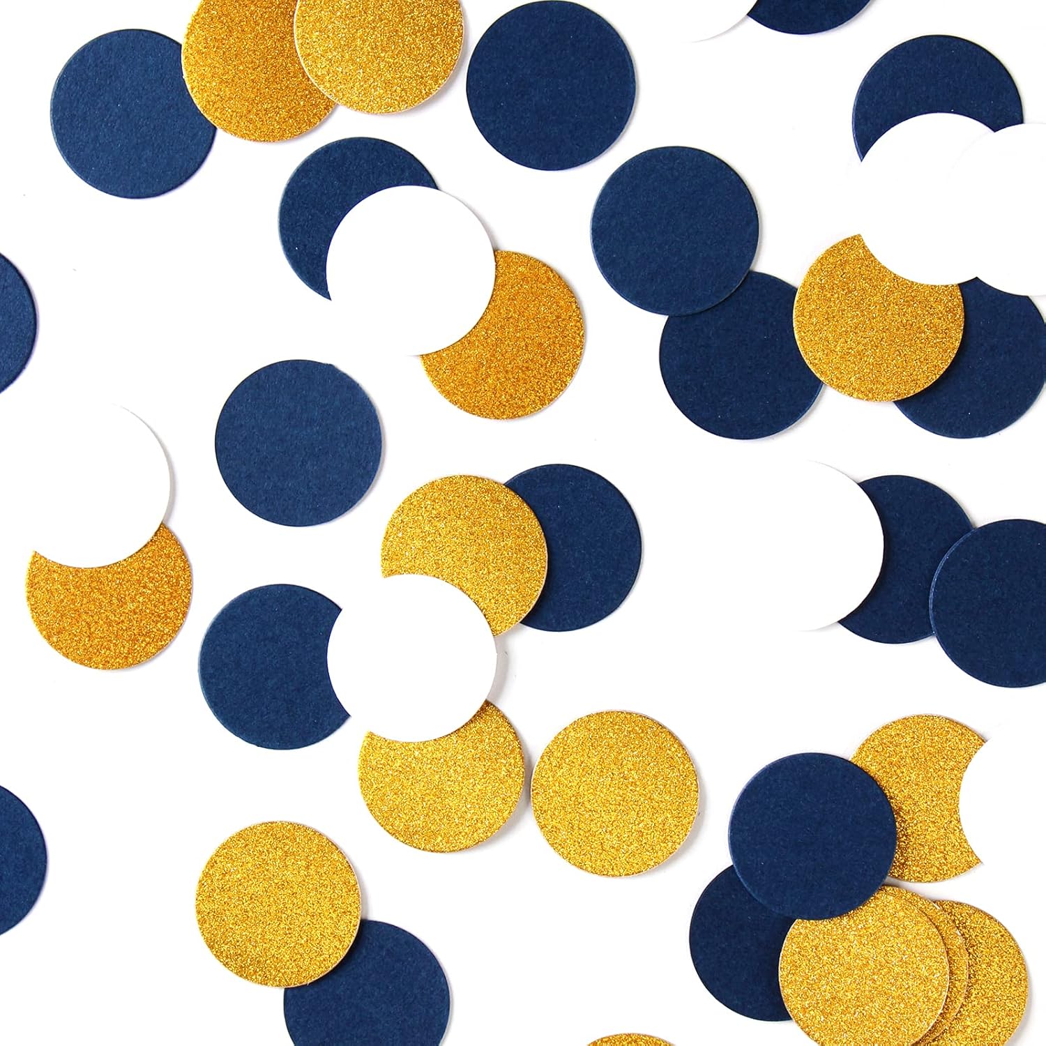 Navy Blue White Gold Confetti Birthday Decorations for Boys Glitter Paper decor Sprinkles Biodegradable Table Confetti Round for Graduation Wedding Baby Shower Party Lasting Surprise 300pcs