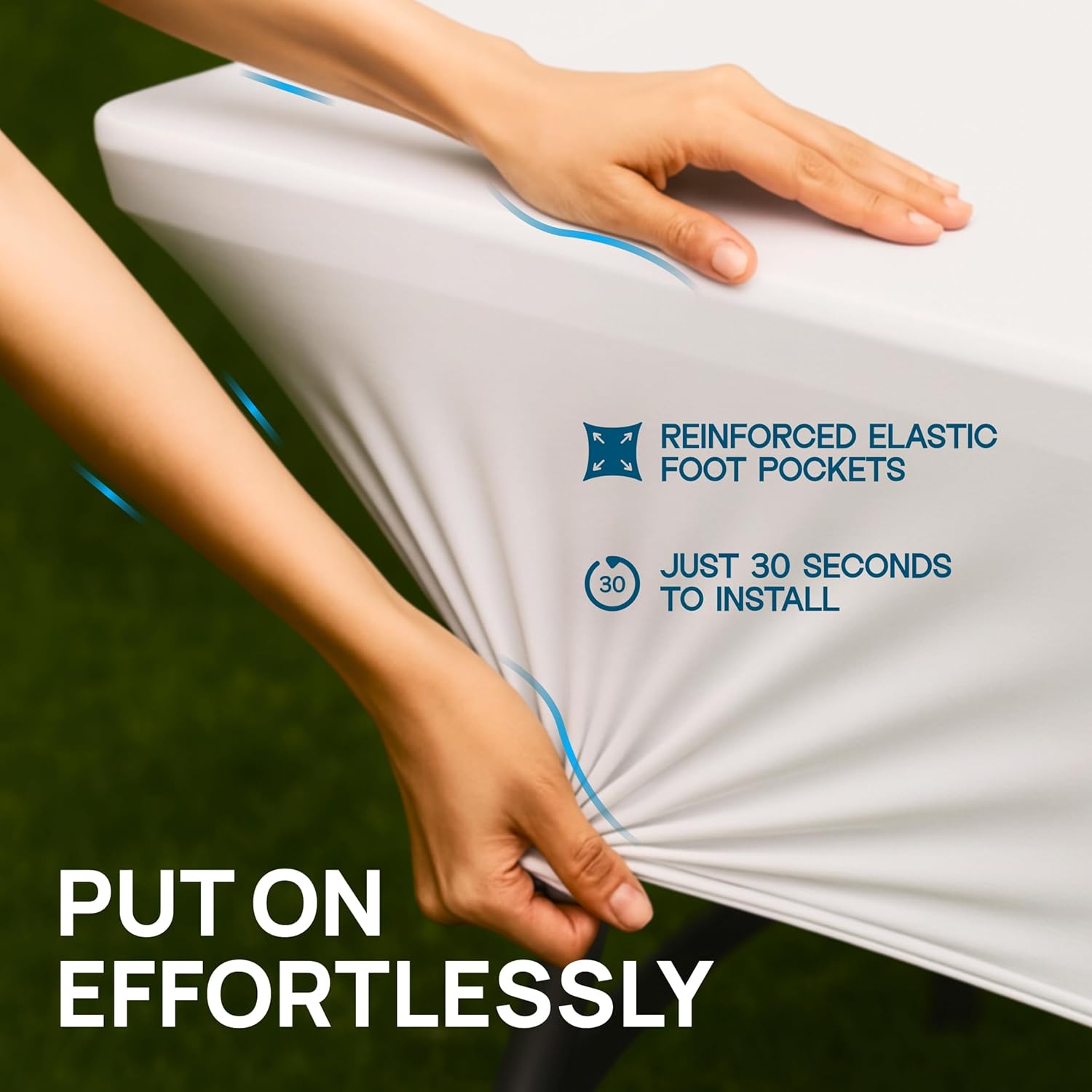 - Quick and Easy Setup: Transform your table in just 30 seconds with our white table cloth rectangle! Wrap the 4 ft table cover fitted around your 4-foot table, slip the legs into the elastic pockets, and achieve a flawless look effortlessly