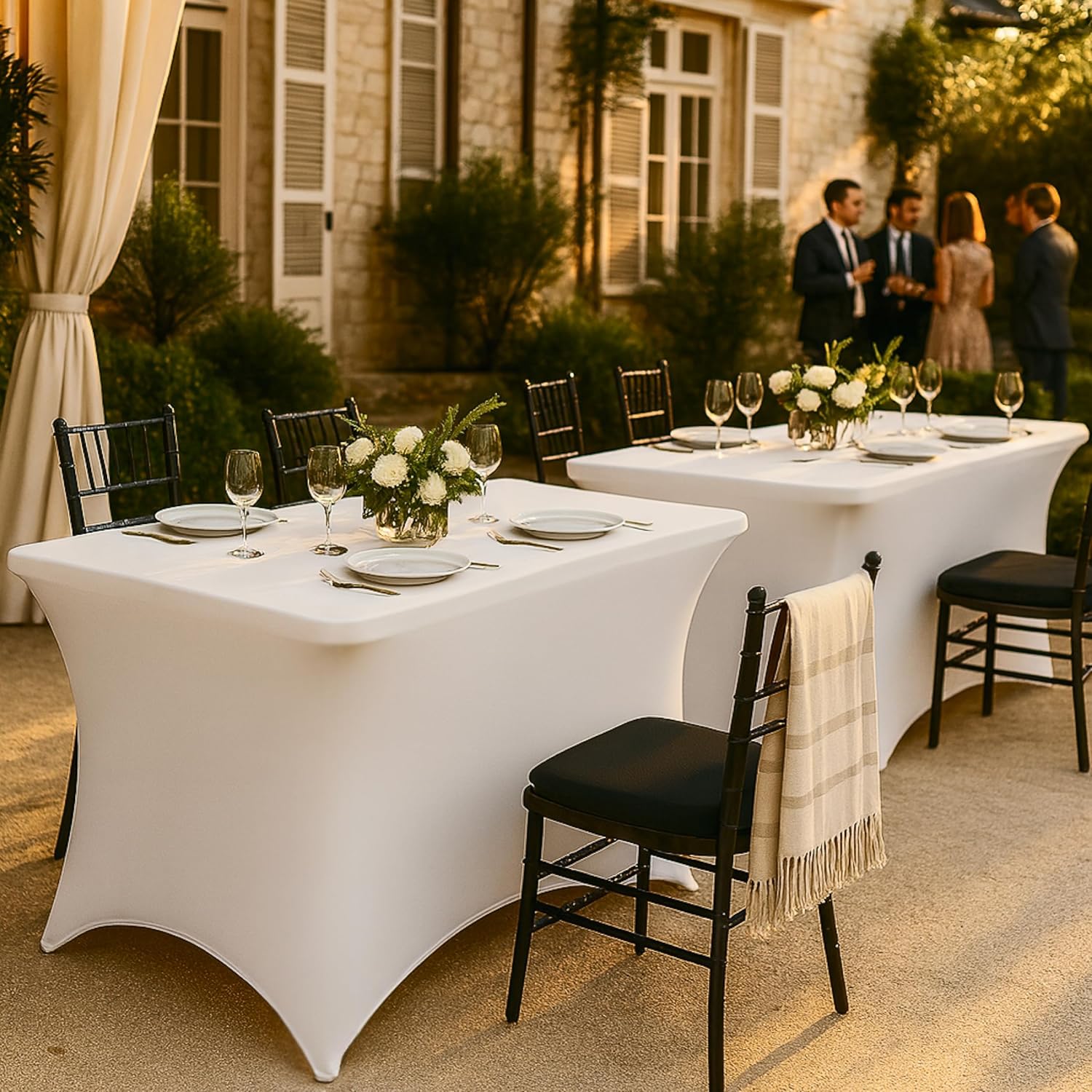 - Secure Design: Featuring reinforced leg pockets, our 4ft spandex table cover ensures a snug, secure fit; These pockets protect the fabric and keep the white tablecloths for rectangle tables in place, even during breezy conditions