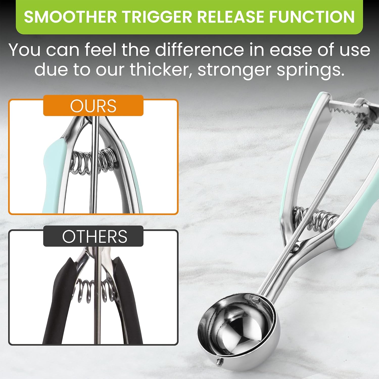 Spring Chef Medium #40 Stainless Steel Cookie Scoop for Baking, Multifunctional Kitchen Food Scooper with Trigger Release, 1.7 Tablespoon Melon Scooper - Dishwasher Safe Meatball Scoop - Mint