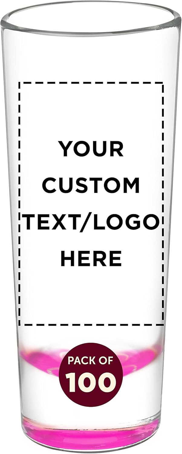 Custom Cordial Shooter Shot Glasses 2 oz. Set of 100, Personalized Bulk Pack - Great for Birthdays, Parties, Indoor & Outdoor Events - Pink