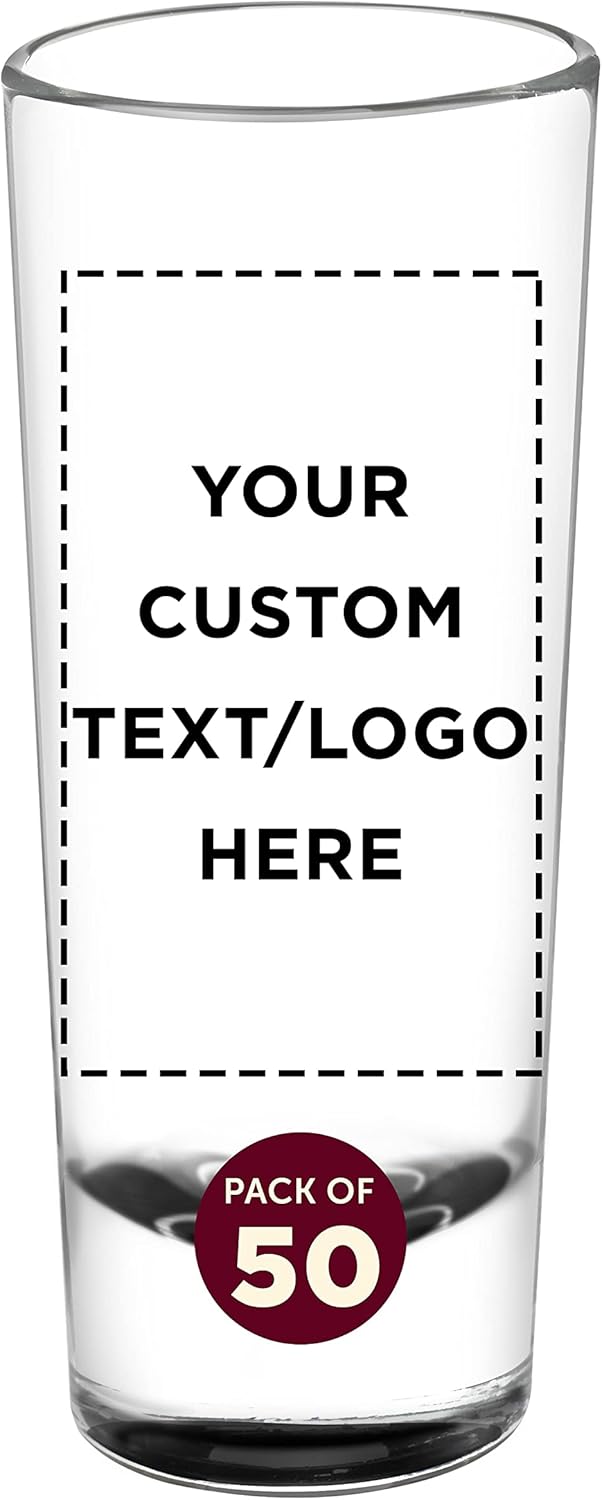 Custom Cordial Shooter Shot Glasses 2 oz. Set of 50, Personalized Bulk Pack - Great for Birthdays, Parties, Indoor & Outdoor Events - Black