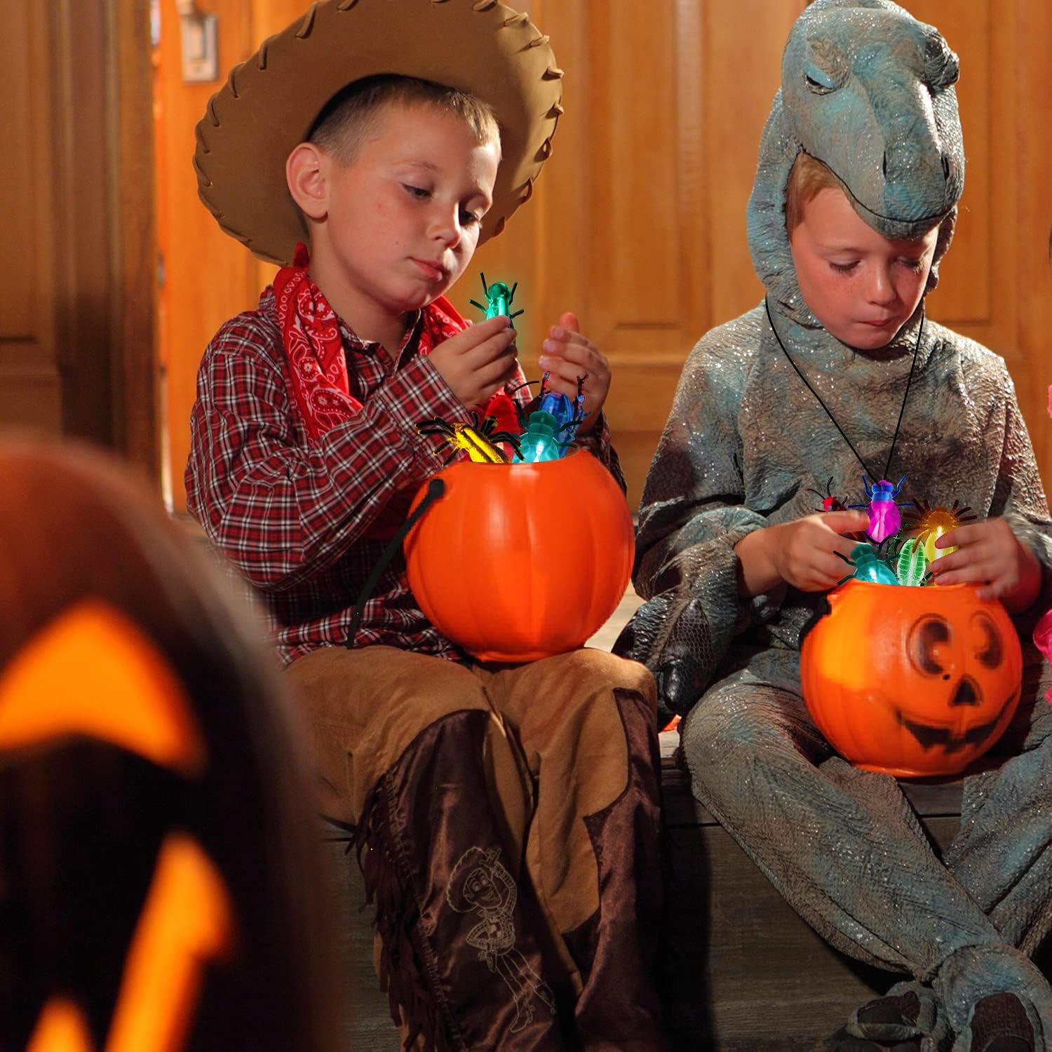 - Glow Halloween Critters assortments are made with superior plastic,Nontoxic ,Durable,Reusable. The light-up Critters are perfect for Halloween party, trick-or-treating ,backyard hunt,and safe for kids to use as prize box toys, carnival prizes, Halloween miniatures,goodie bag fillers.Good for birthday party gift bags too. It also could be used for pool parties,or made for a spooky Halloween bath for kids as it's waterproof.