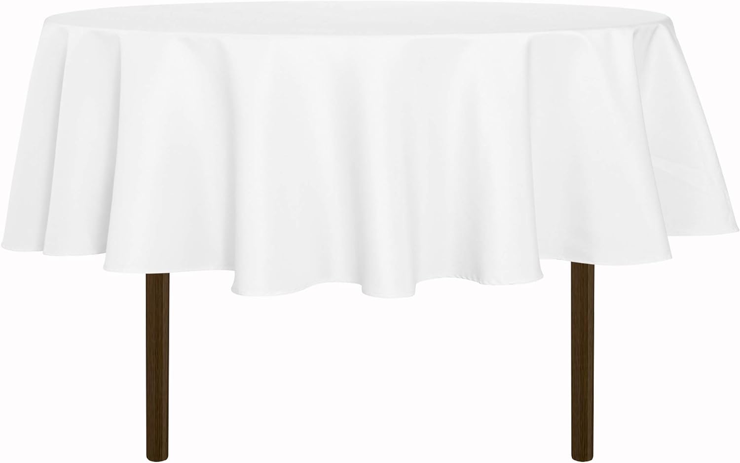 sancua Round Tablecloth - 80 Inch - Water Resistant Spill Proof Washable Polyester Table Cloth Decorative Fabric Table Cover for Dining Tables, Buffet Parties and Camping, White