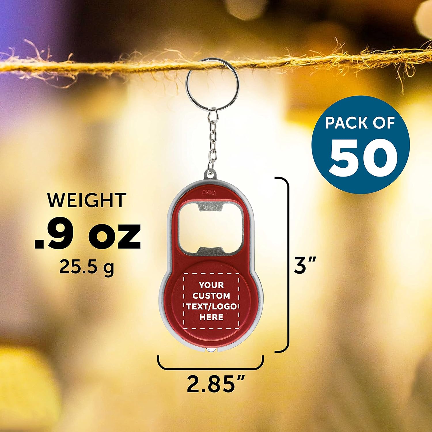 DISCOUNT PROMOS Custom Bottle Opener & LED Keychains Set of 50, Personalized Bulk Pack - Perfect for Tradeshows, Party Favors, Other Events - Red