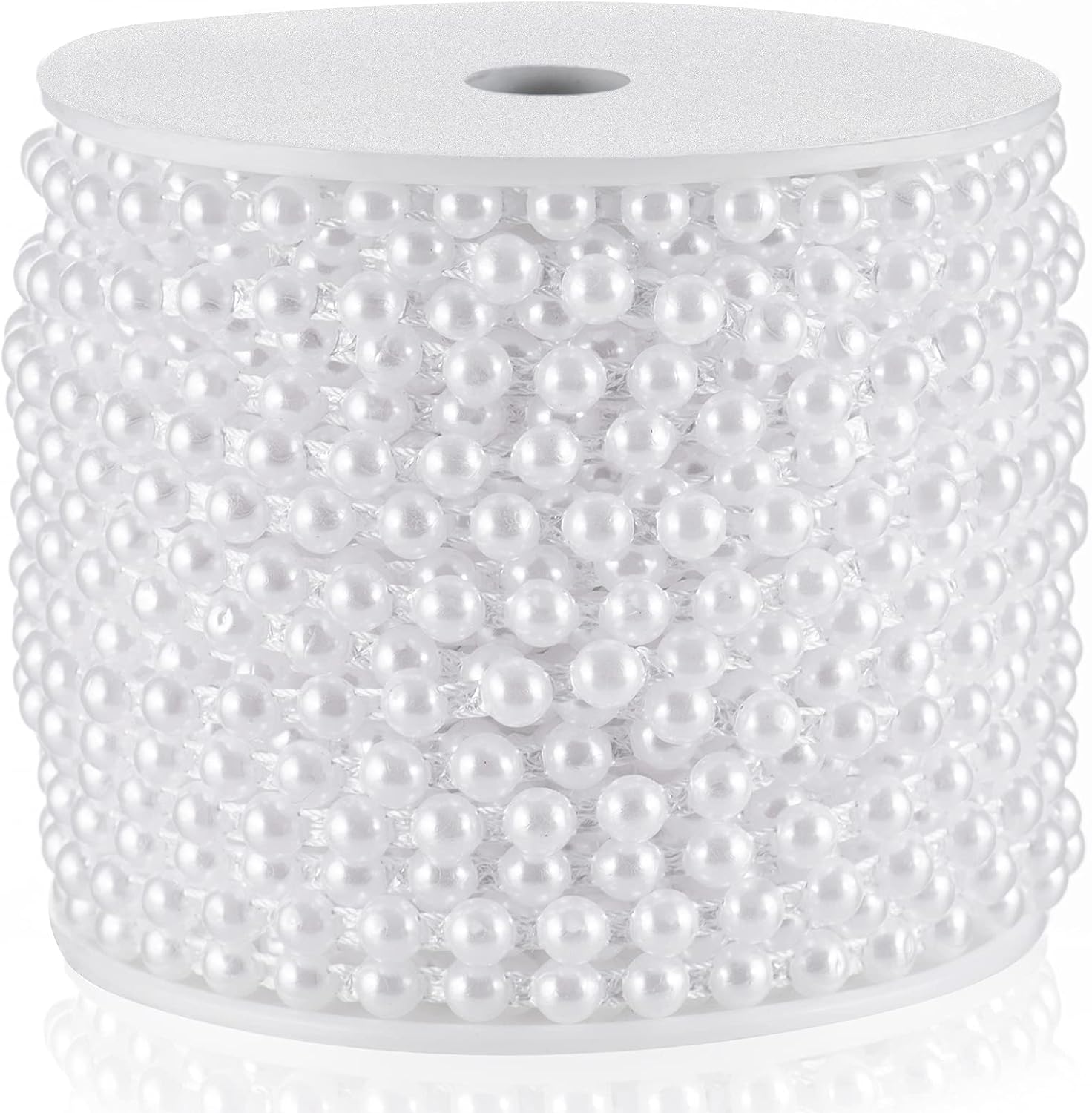 Half-Round Pearl Bead Garland String 27 Yards, 6MM Flat Pearl Beaded Spool Roll Crafts for Wedding Party Decoration(White)