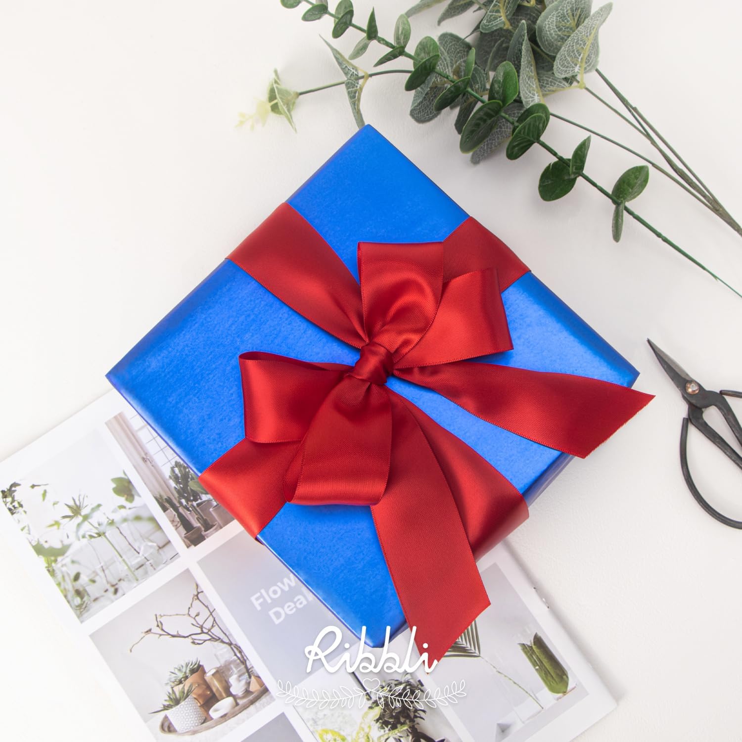 Ribbli Red Double Faced Satin Ribbon,1-1/2” x Continuous 25 Yards,Use for Bows Bouquet,Christmas Gift Wrapping,Floral Arrangement