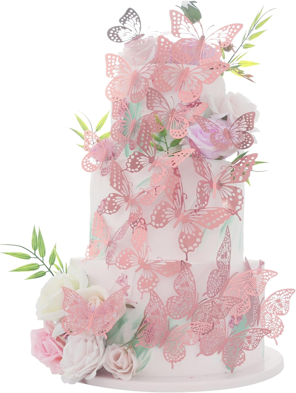 Gyufise 36 Pack Rose Gold Glitter 3D Cupcake Toppers - Hollow Butterfly Cake Decorations for Birthday Wedding Fairy Party - Wall Sticker Decal for Background Wall Decoration