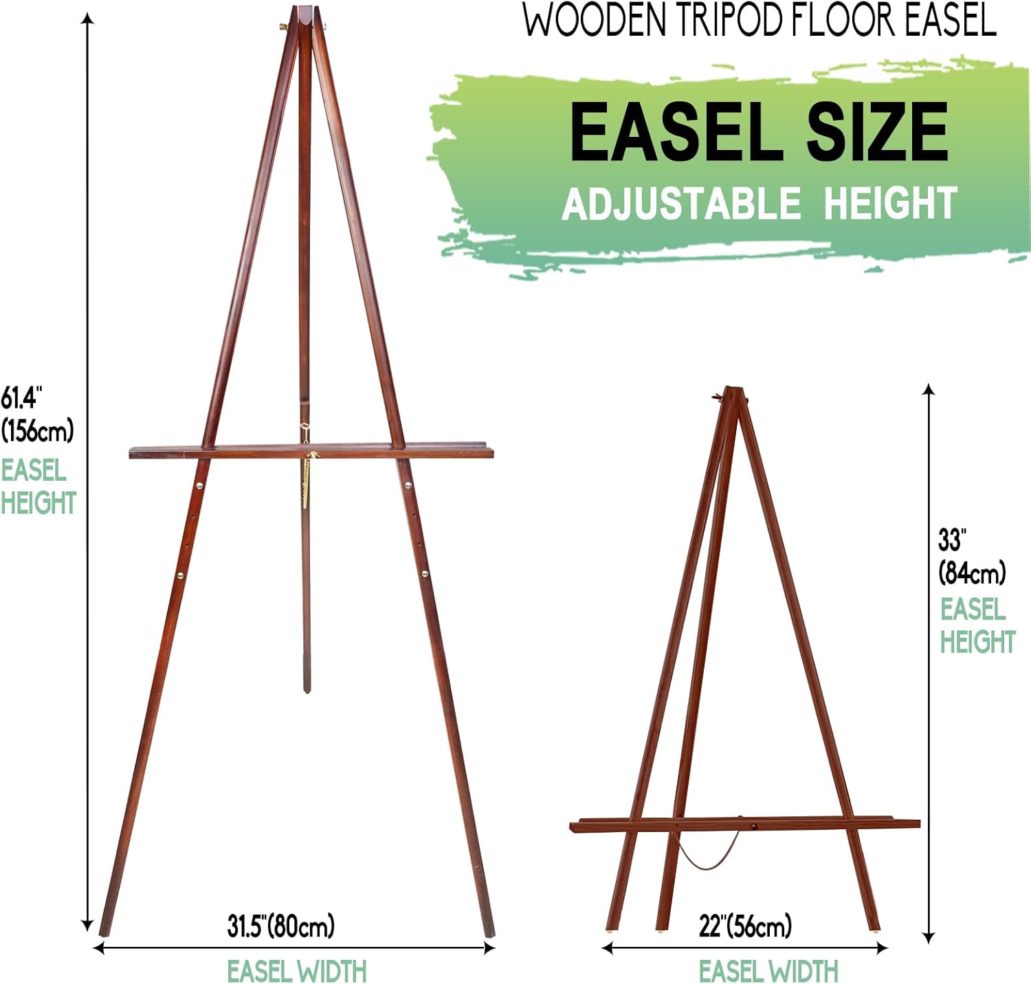 - Premium Tripod Display Holder- "A" Frame design easel made of sturdy pine wood. The unique retro reddish-brown shows elegance. It is ideal for the artist who is looking for a lightweight, portable easel.